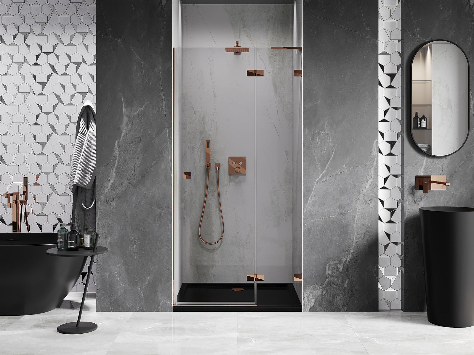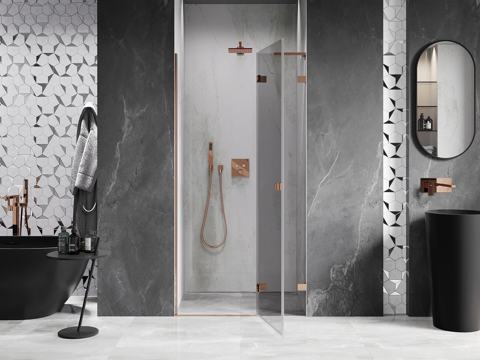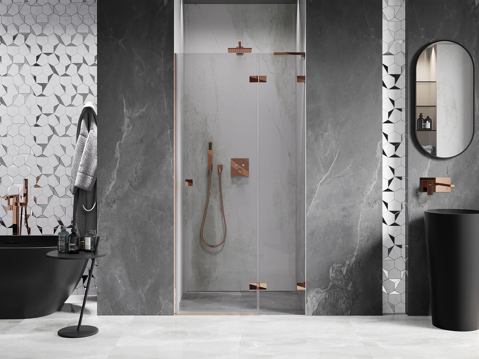 Mexen Lunar L uși de duș batante dreapta 75 cm, transparent, aur roz - 834L-075-000-60-00-P
