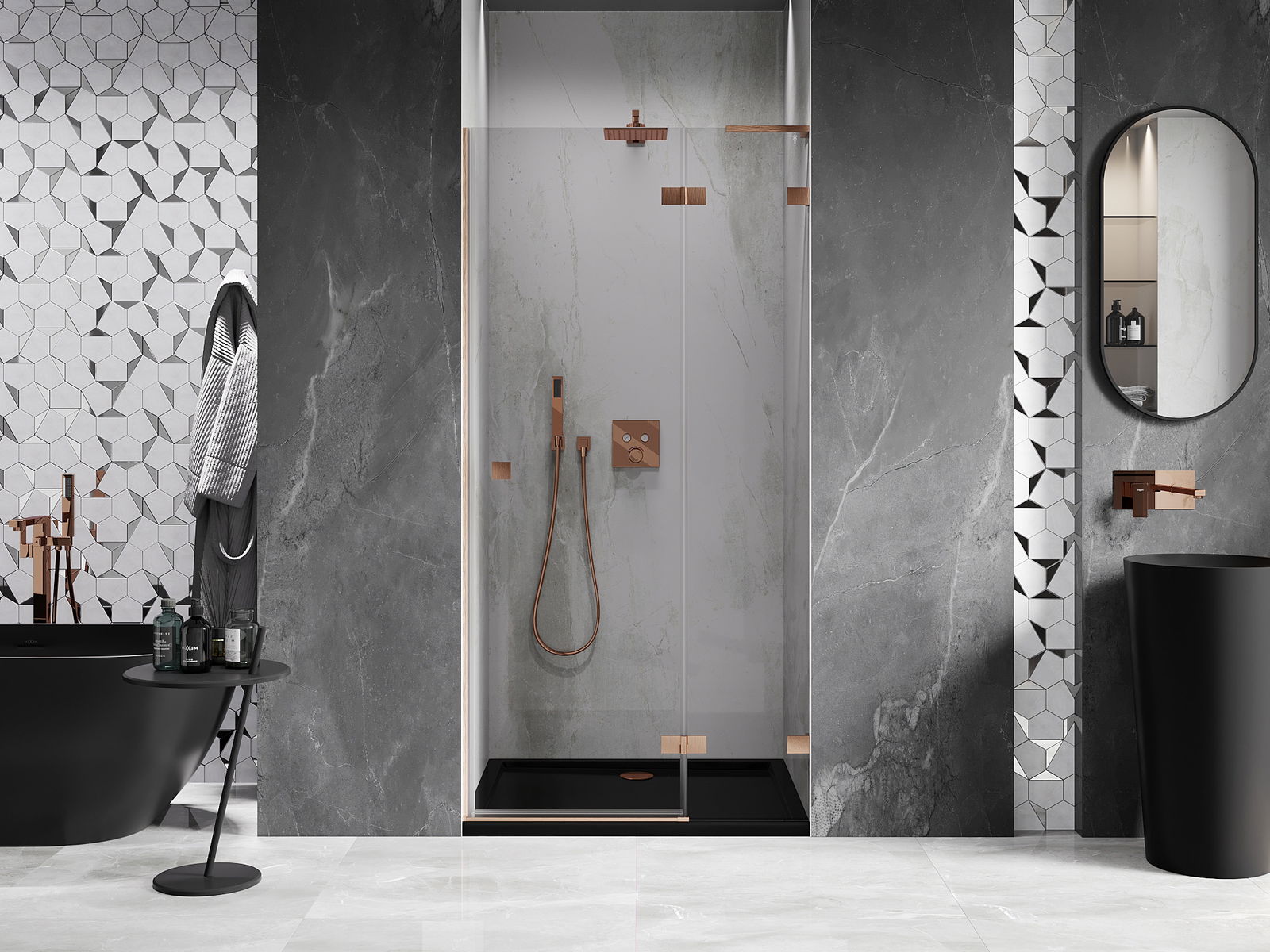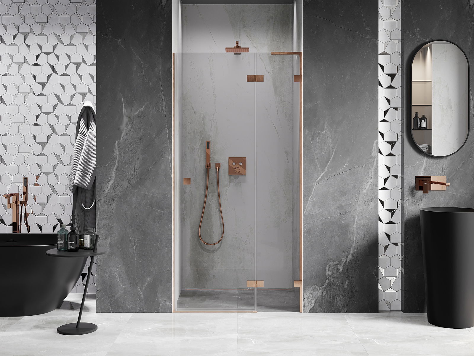 Clemele și balamalele sunt fabricate din alamă foarte durabilă și, în plus, formează o suprafață aliniată cu sticla. Este o alegere excelentă care îmbină eleganța, durabilitatea și designul modern. Datorită acestor soluții, dușul câștigă în estetică și facilitează întreținerea curățeniei.