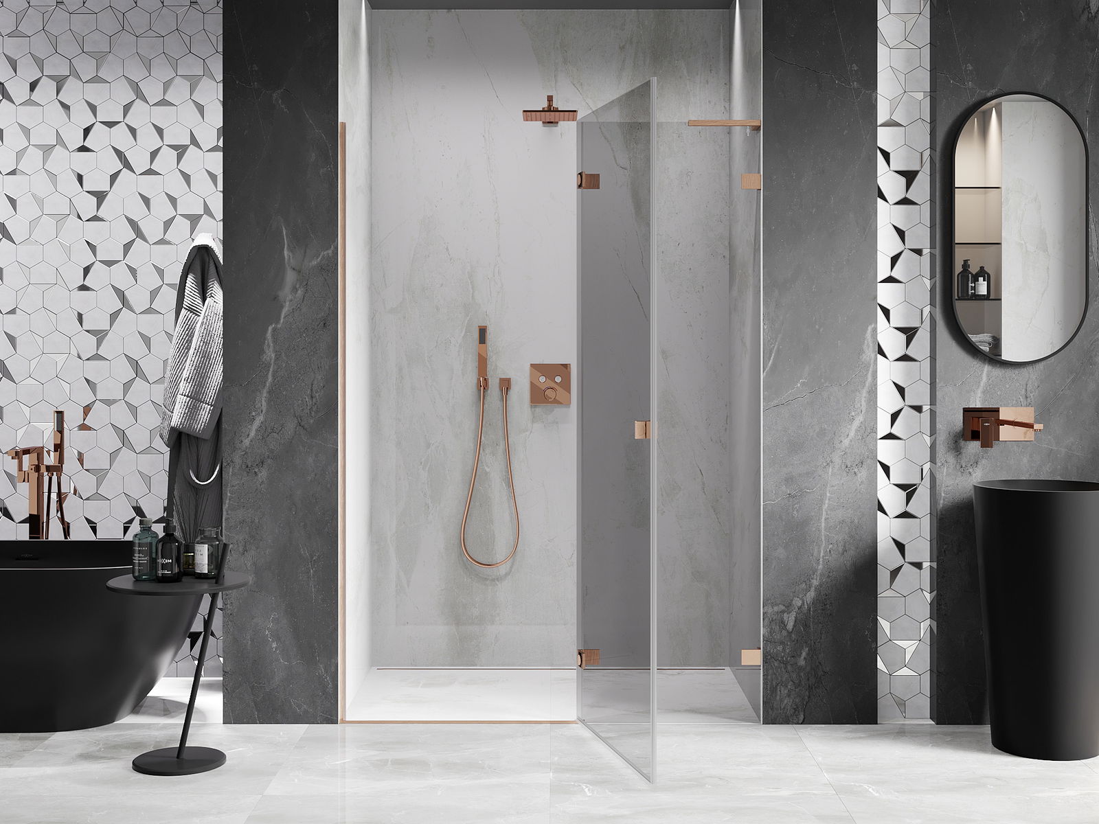 Mexen Lunar L uși de duș batante dreapta 140 cm, transparent, cupru periat - 834L-140-000-65-00-P