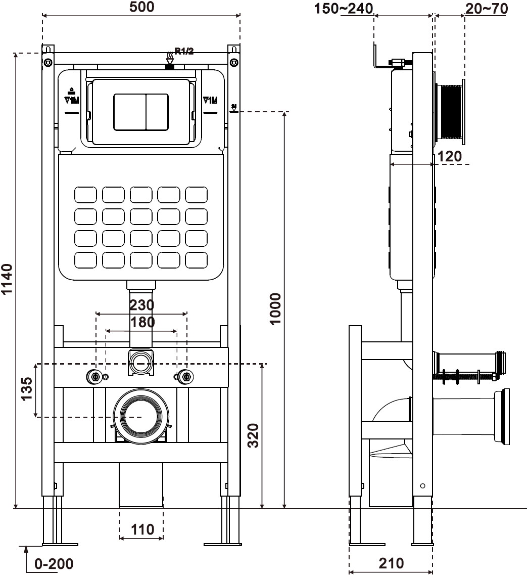 Mexen Tex Air F este un cadru încastrat autoportant cu funcție de spălare pneumatică. Datorită înălțimii de 114 cm, lățimii de 50 cm și grosimii de 12 cm, este ideal pentru montaj în pereți plini și din ghips-carton. Oferă compatibilitate cu vase WC suspendate cu distanță între orificii de 18 cm sau 23 cm. Are picioare și suporturi galvanizate, reglabile, ceea ce facilitează montajul pe podele cu grosime între 0-20 cm. Rezervorul cu izolație împotriva condensului asigură durabilitate, iar reglarea cantității de apă spălată (6/9 L, 4,5/3 L) oferă economii. Ideal pentru completare cu butoanele Mexen din seria Tex.
