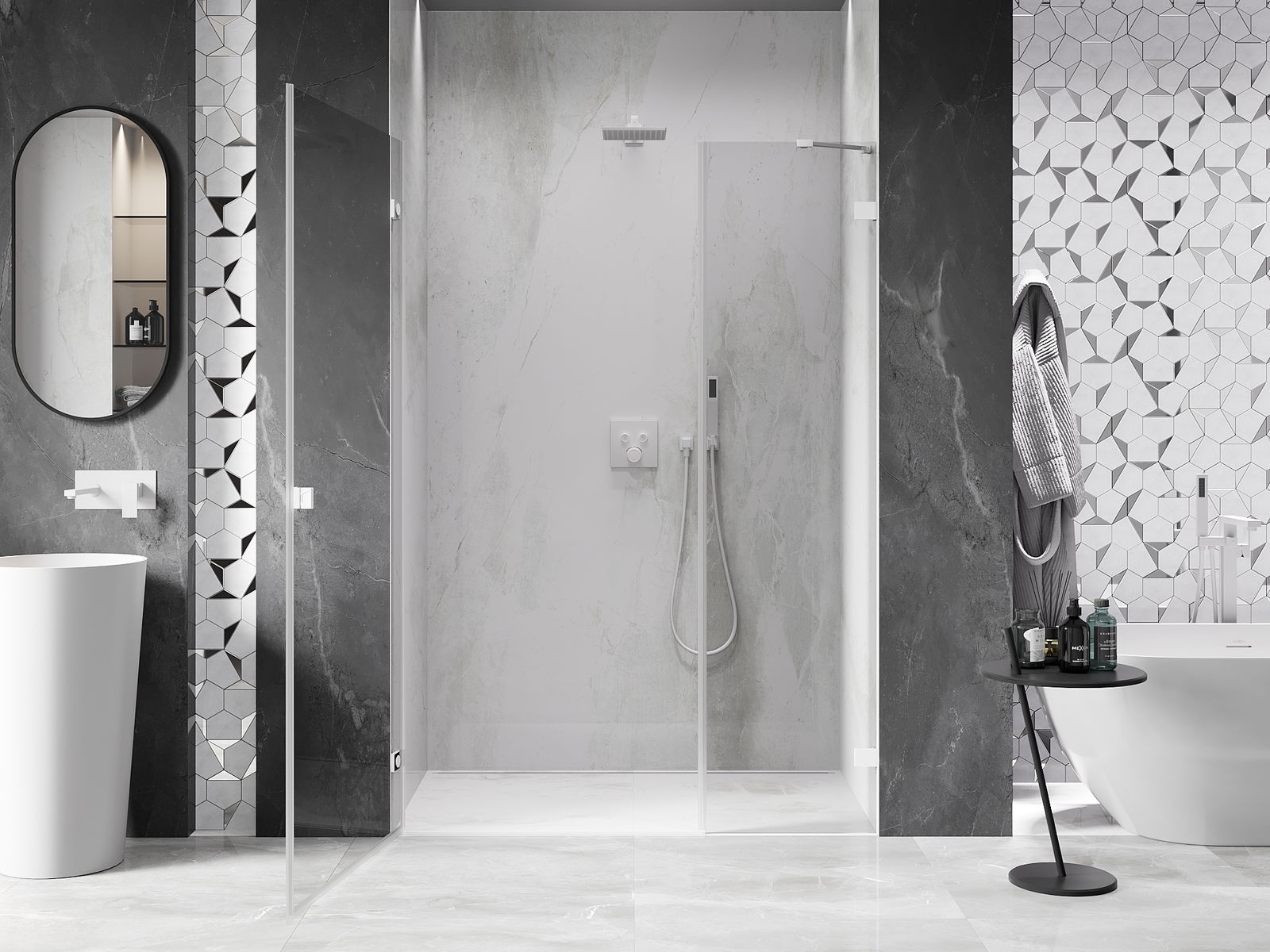 Clemele au fost realizate din alamă foarte durabilă și, în plus, creează o suprafață de sticlă nivelată. Este o alegere excelentă care combină eleganța, durabilitatea și designul modern. Datorită acestor soluții, dușul câștigă în estetică și, în același timp, facilitează menținerea curățeniei.