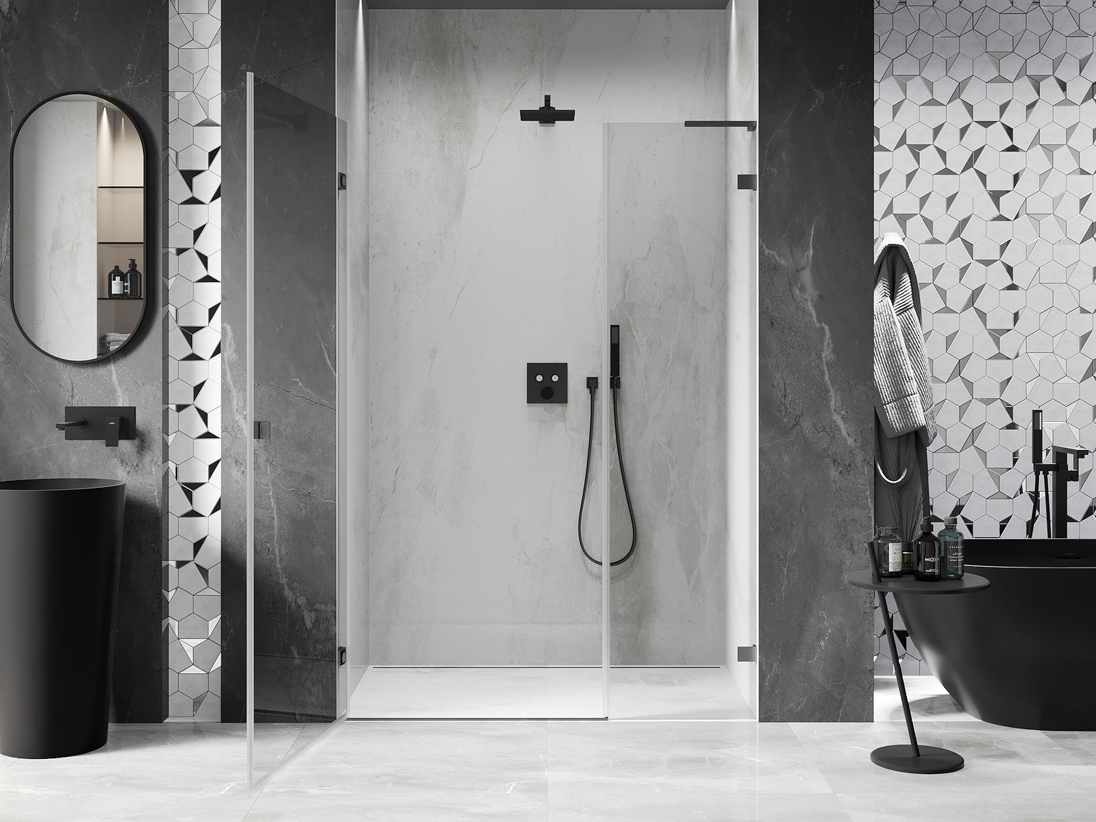 Clemele au fost realizate din alamă foarte durabilă și, în plus, creează o suprafață de sticlă nivelată. Este o alegere excelentă care combină eleganța, durabilitatea și designul modern. Datorită acestor soluții, dușul câștigă în estetică și, în același timp, facilitează menținerea curățeniei.