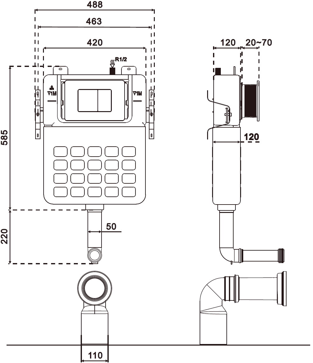 Produsul are un cot de scurgere reglabil, care permite reducerea adâncimii de montaj. Această funcție permite adaptarea ușoară a produsului la diferite orificii de scurgere disponibile în baie, asigurând o montare precisă.