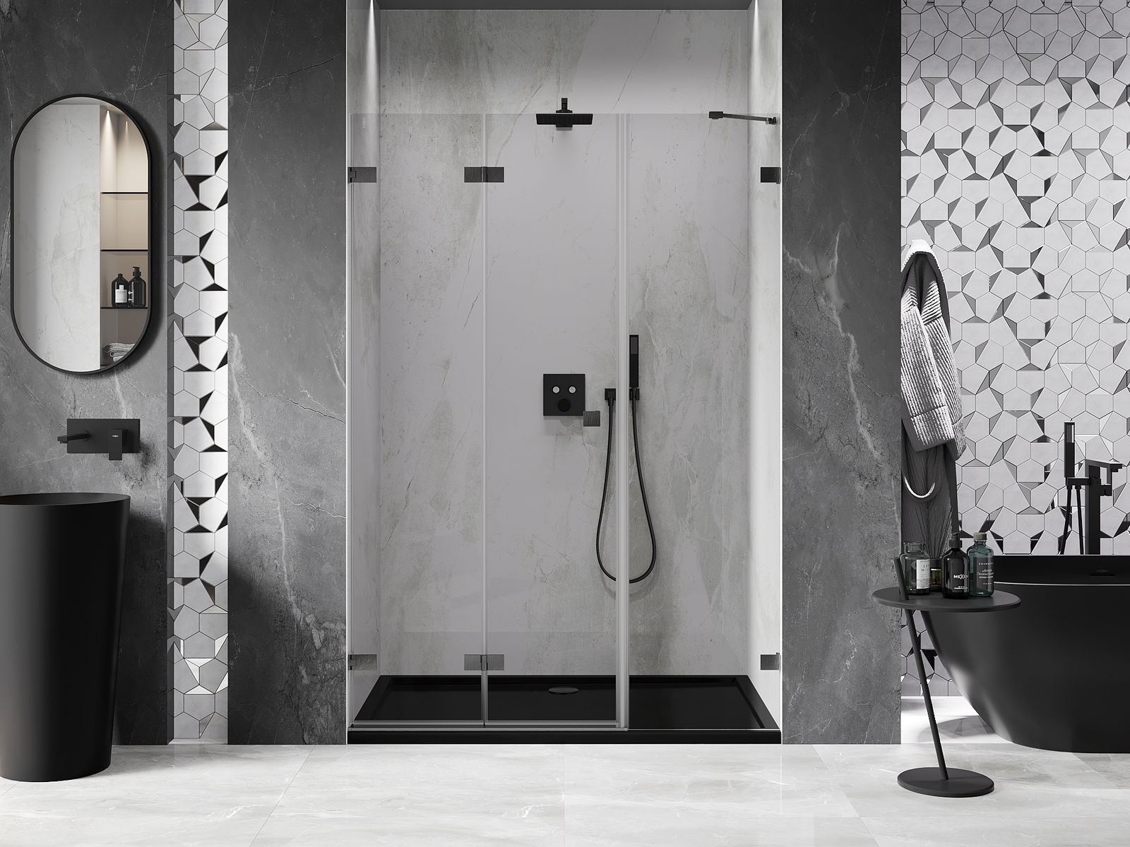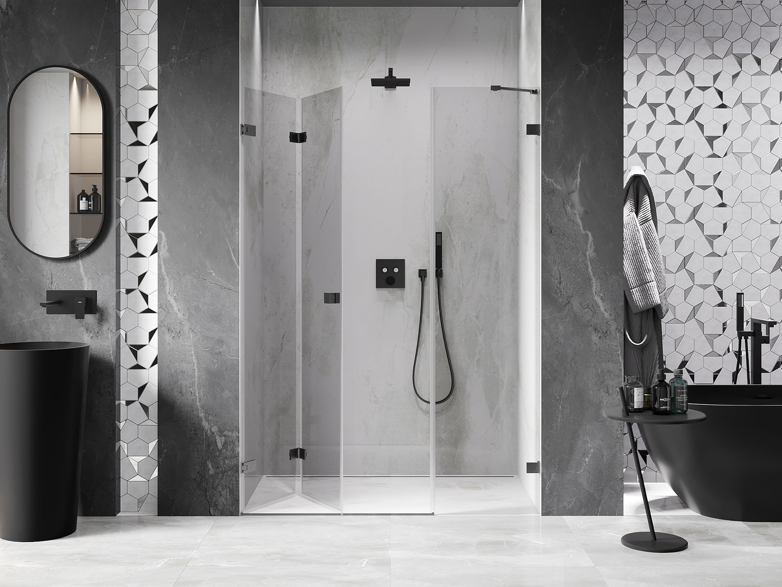 Posibilitatea de a plia ușile, atât către exterior, cât și către interior, permite obținerea mai mult spațiu atunci când nu se folosește dușul. Este o soluție ideală pentru băi mai mici, maximizând utilizarea spațiului disponibil.