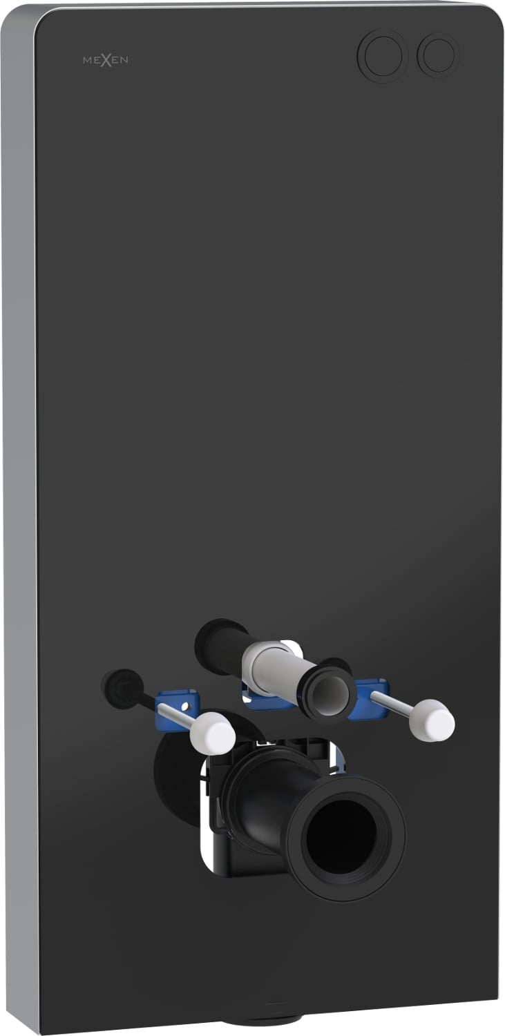 Mexen Tex Air G este un cadru de suprafață elegant, cu un design deosebit, ideal pentru interioare moderne. Datorită carcasei frontale din sticlă securizată de culoare neagră și aluminiului periat pe laterale, cadrul se potrivește perfect cu diferite stiluri de băi. Produsul cu dimensiuni de 103 cm înălțime, 50 cm lățime și 12 cm grosime este dotat cu un buton de clătire pneumatic care permite reglarea cantității de apă (3/6 L). Este universal, potrivit pentru vase suspendate și de podea (găuri de 18 sau 23 cm), ceea ce îl face o alegere excelentă pentru diverse soluții de baie.