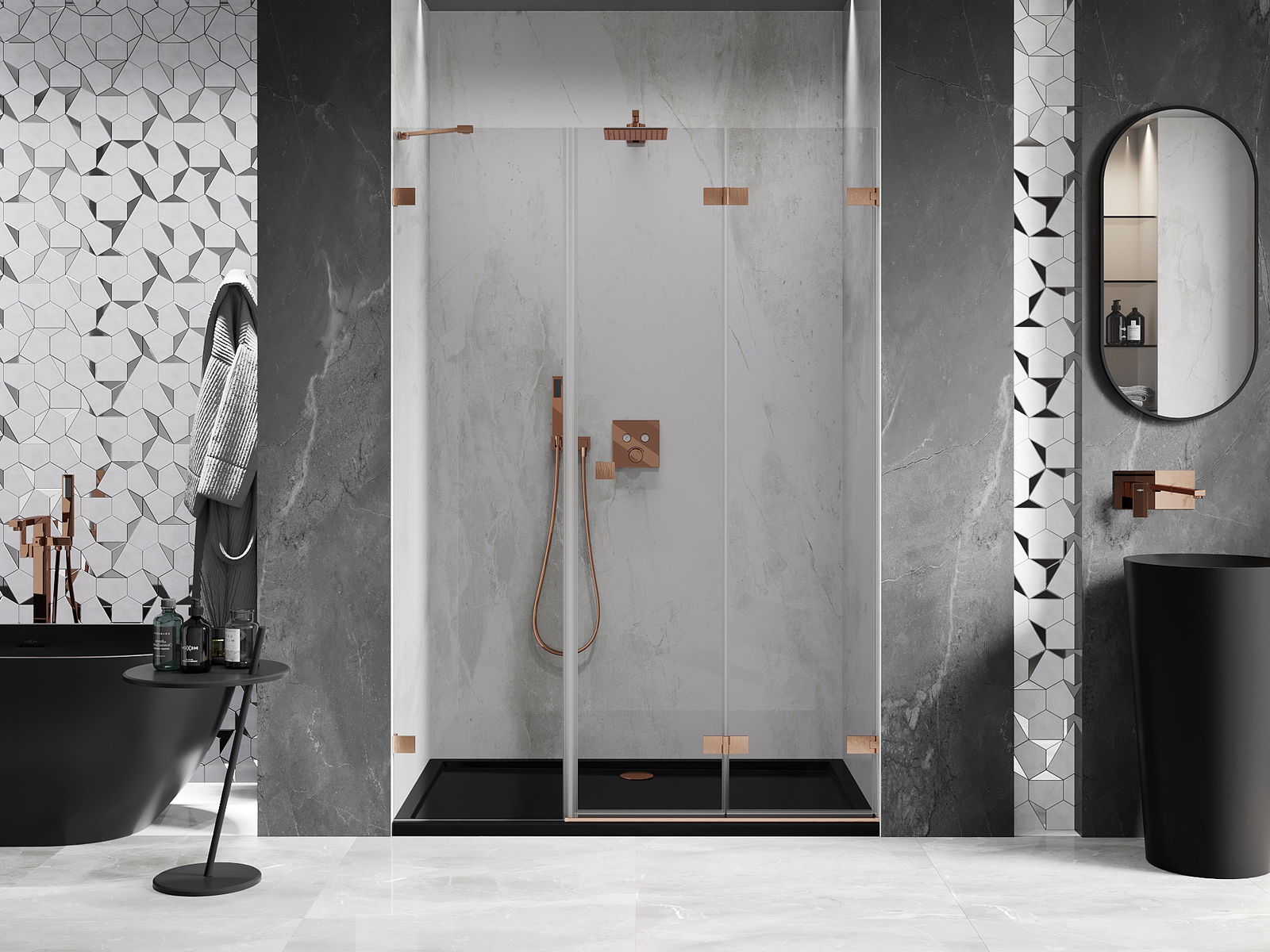 Posibilitatea de a plia ușile, atât către exterior, cât și către interior, permite obținerea mai mult spațiu atunci când nu se folosește dușul. Este o soluție ideală pentru băi mai mici, maximizând utilizarea spațiului disponibil.
