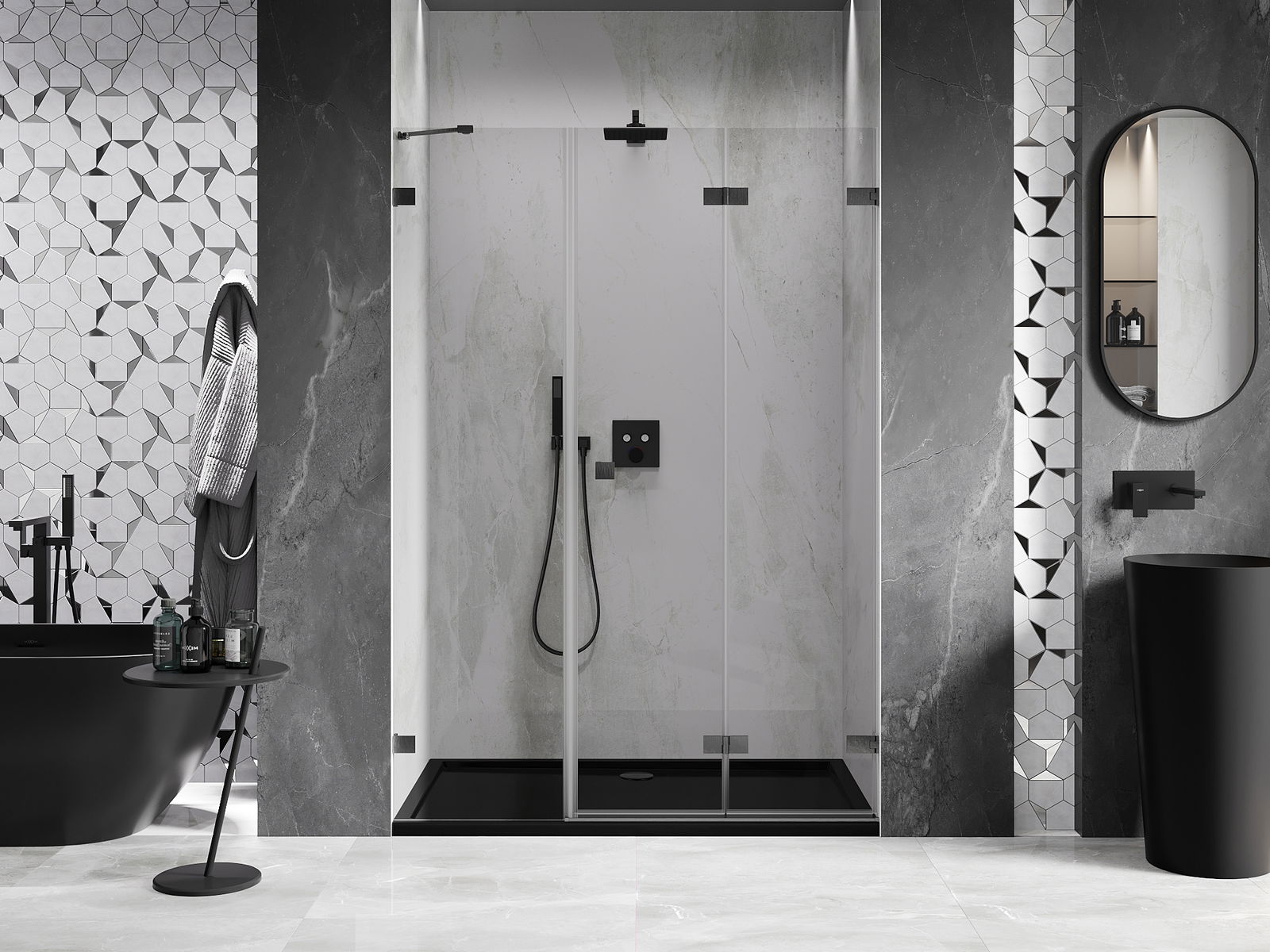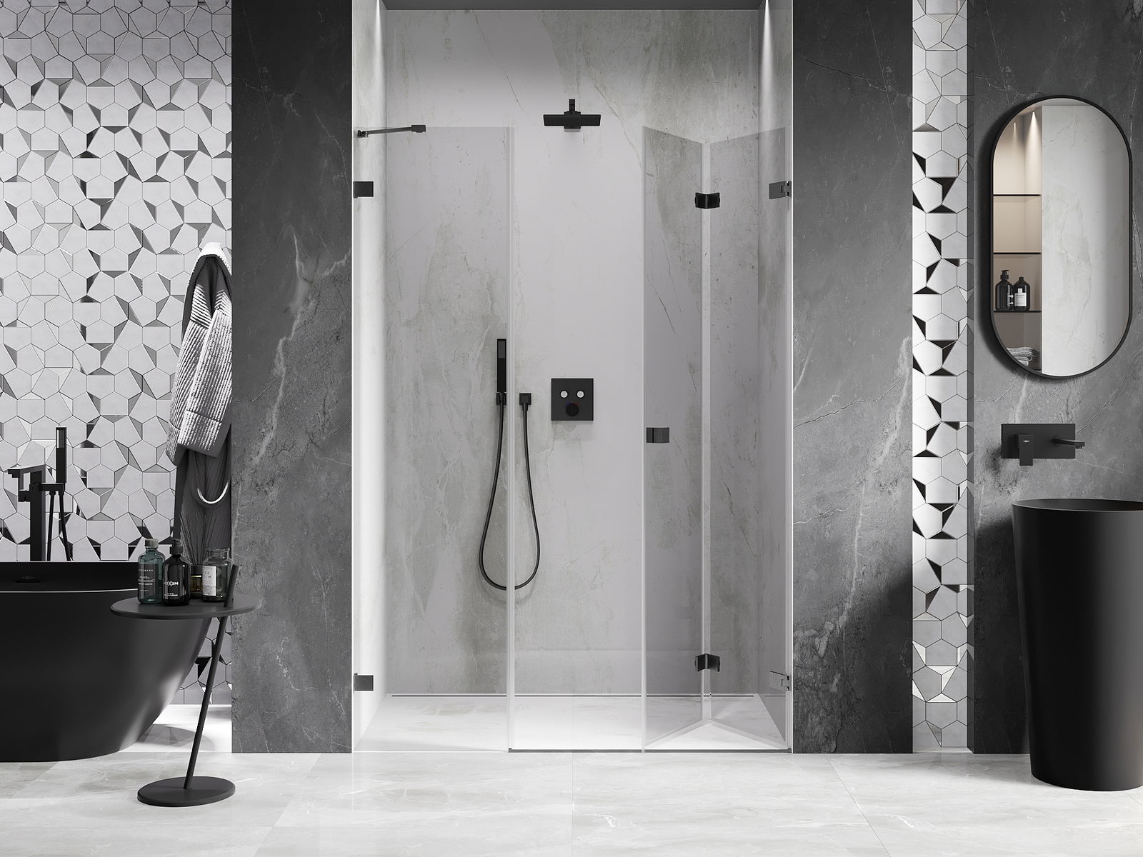Posibilitatea de a plia ușile, atât către exterior, cât și către interior, permite obținerea mai mult spațiu atunci când nu se folosește dușul. Este o soluție ideală pentru băi mai mici, maximizând utilizarea spațiului disponibil.