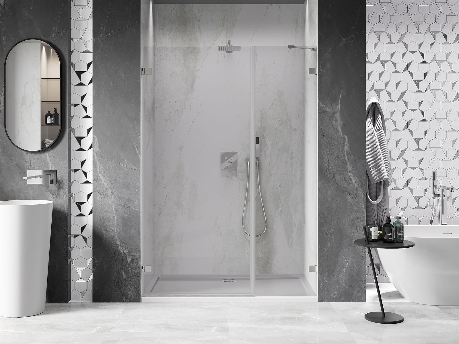 Clemele au fost realizate din alamă foarte durabilă și, în plus, creează o suprafață de sticlă nivelată. Este o alegere excelentă care combină eleganța, durabilitatea și designul modern. Datorită acestor soluții, dușul câștigă în estetică și, în același timp, facilitează menținerea curățeniei.