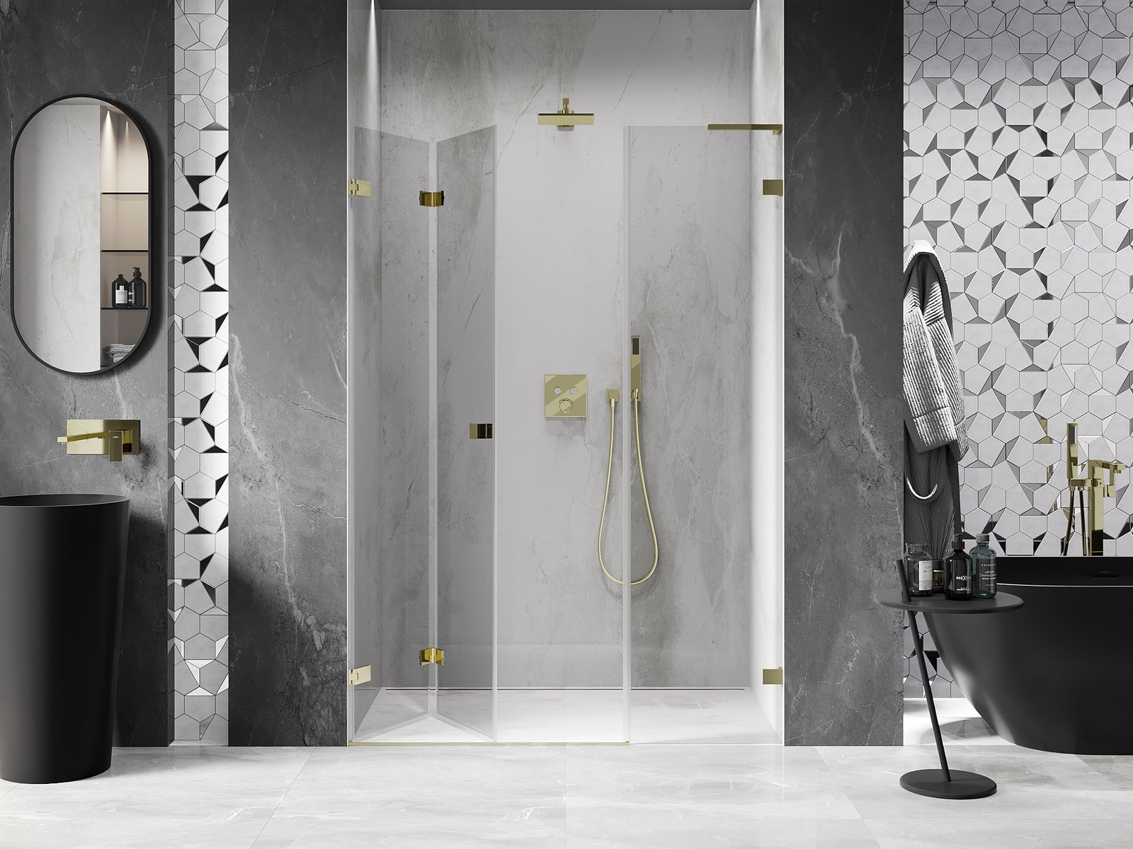Posibilitatea de a plia ușile, atât către exterior, cât și către interior, permite obținerea mai mult spațiu atunci când nu se folosește dușul. Este o soluție ideală pentru băi mai mici, maximizând utilizarea spațiului disponibil.