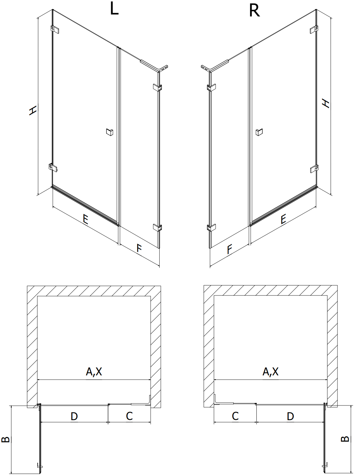 Grosimea sticlei: ușă 6 mm, perete 8 mm