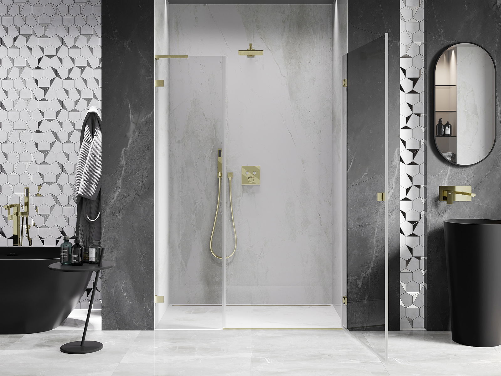 Clemele au fost realizate din alamă foarte durabilă și, în plus, creează o suprafață de sticlă nivelată. Este o alegere excelentă care combină eleganța, durabilitatea și designul modern. Datorită acestor soluții, dușul câștigă în estetică și, în același timp, facilitează menținerea curățeniei.