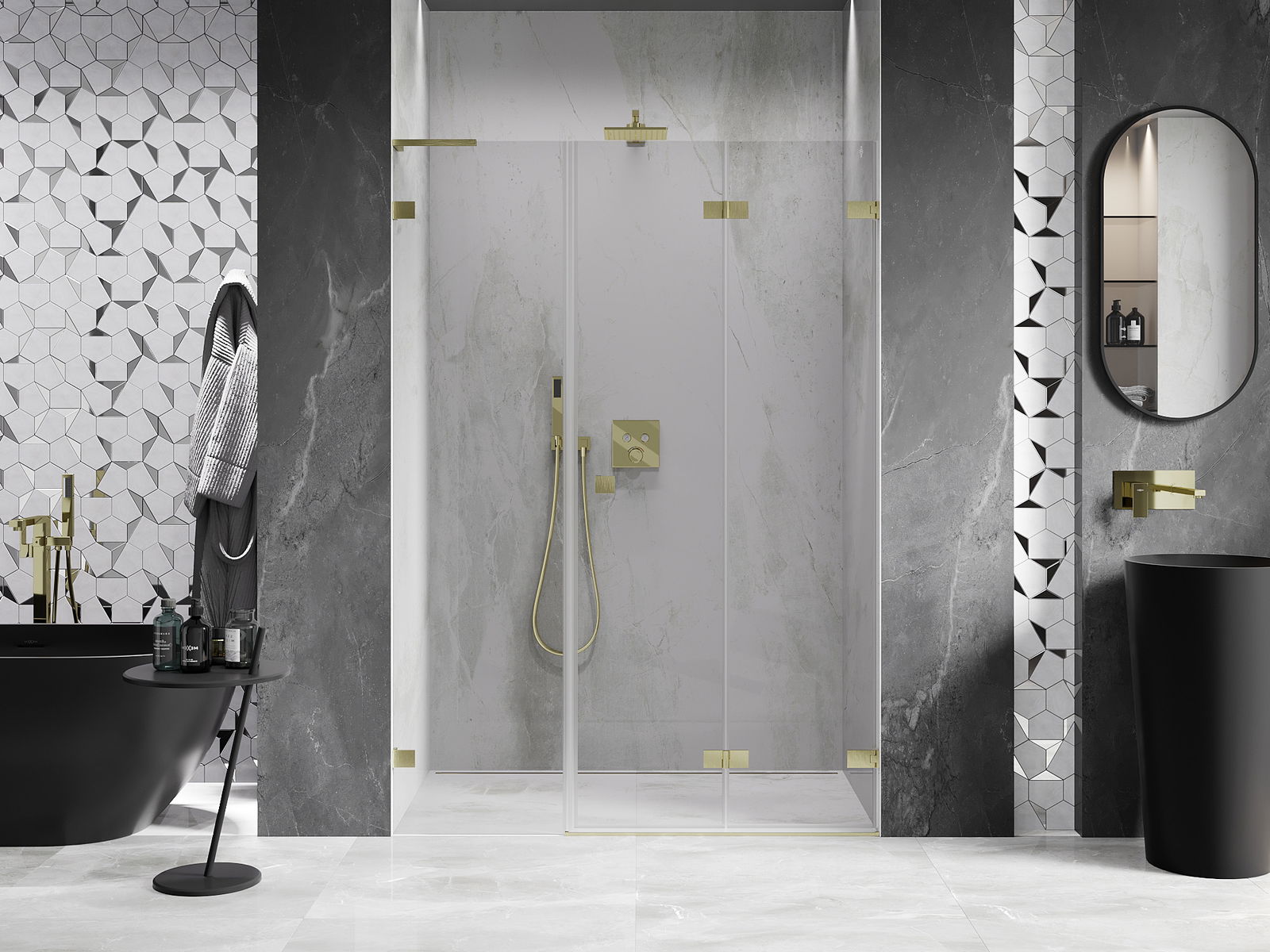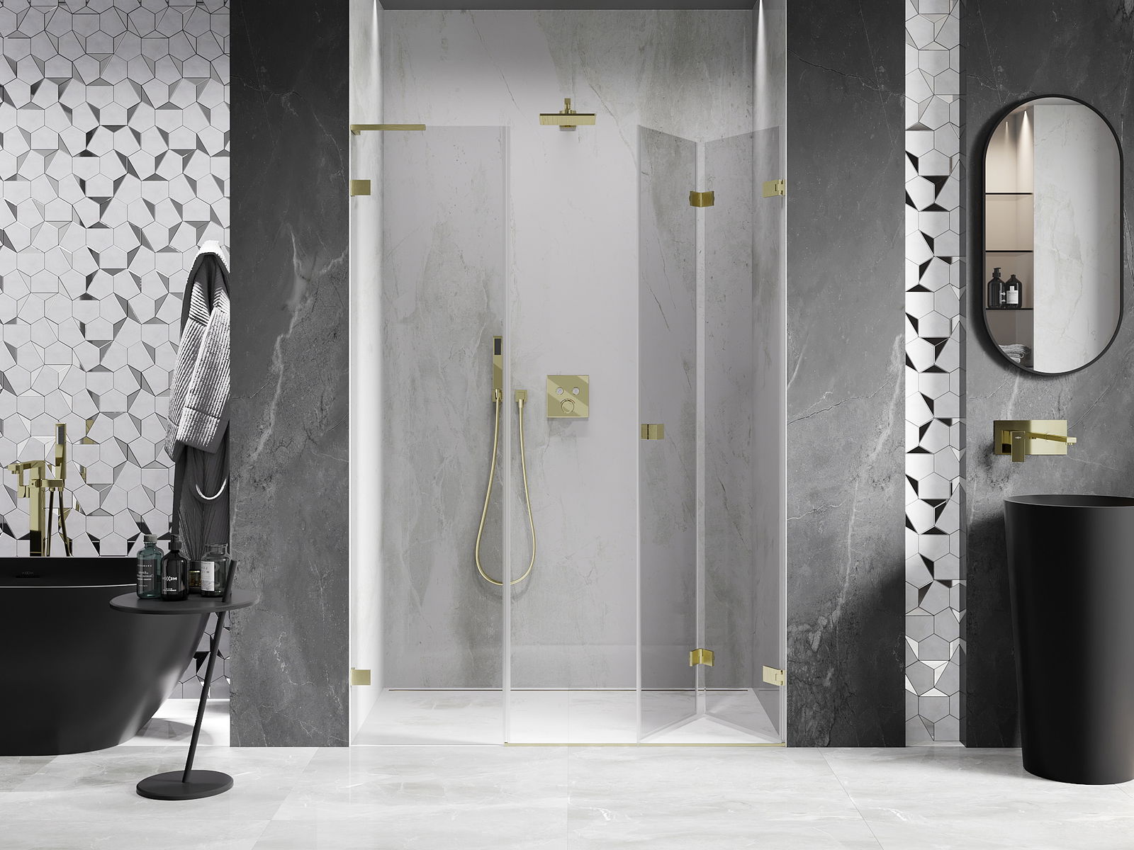 Posibilitatea de a plia ușile, atât către exterior, cât și către interior, permite obținerea mai mult spațiu atunci când nu se folosește dușul. Este o soluție ideală pentru băi mai mici, maximizând utilizarea spațiului disponibil.