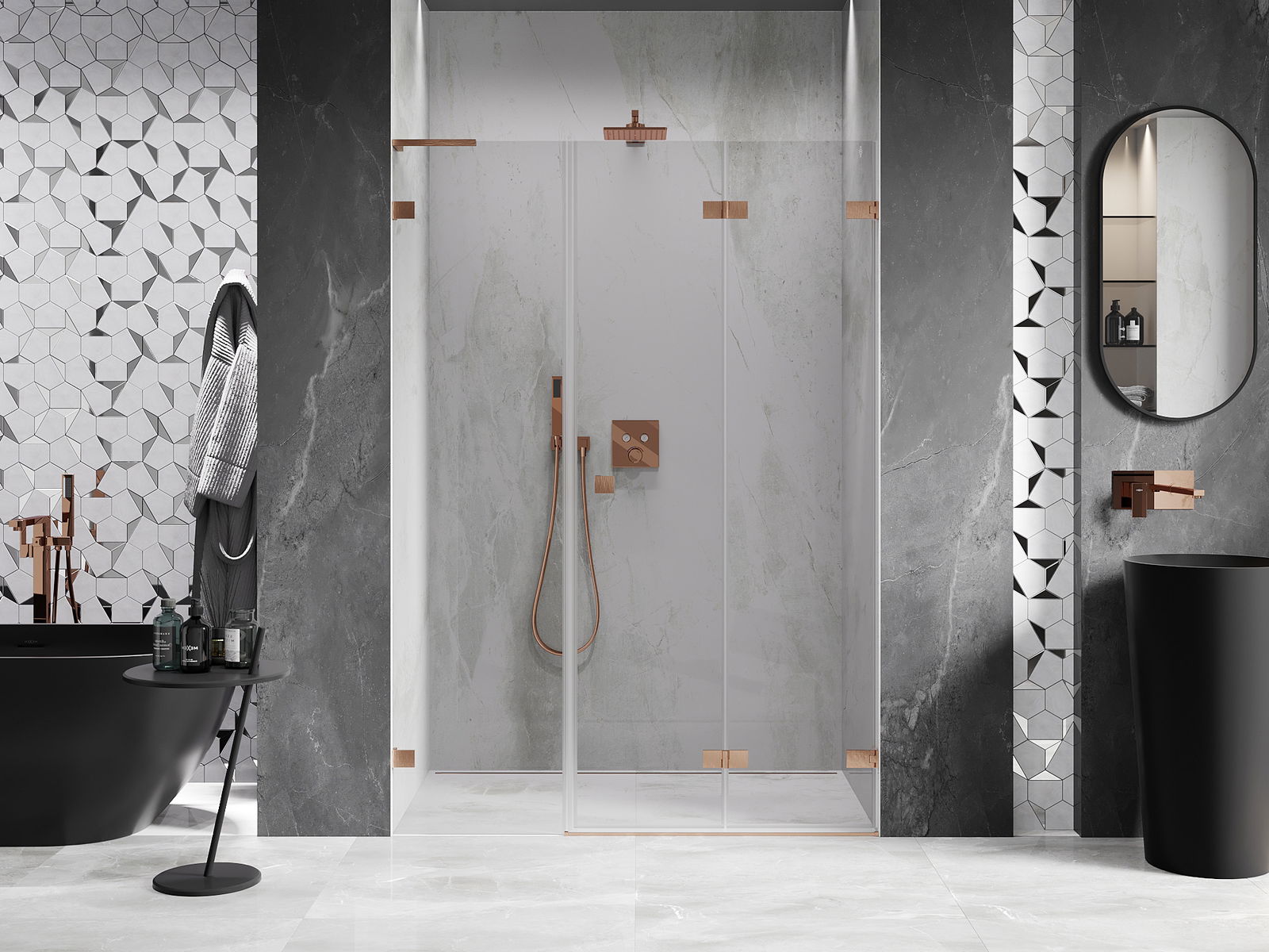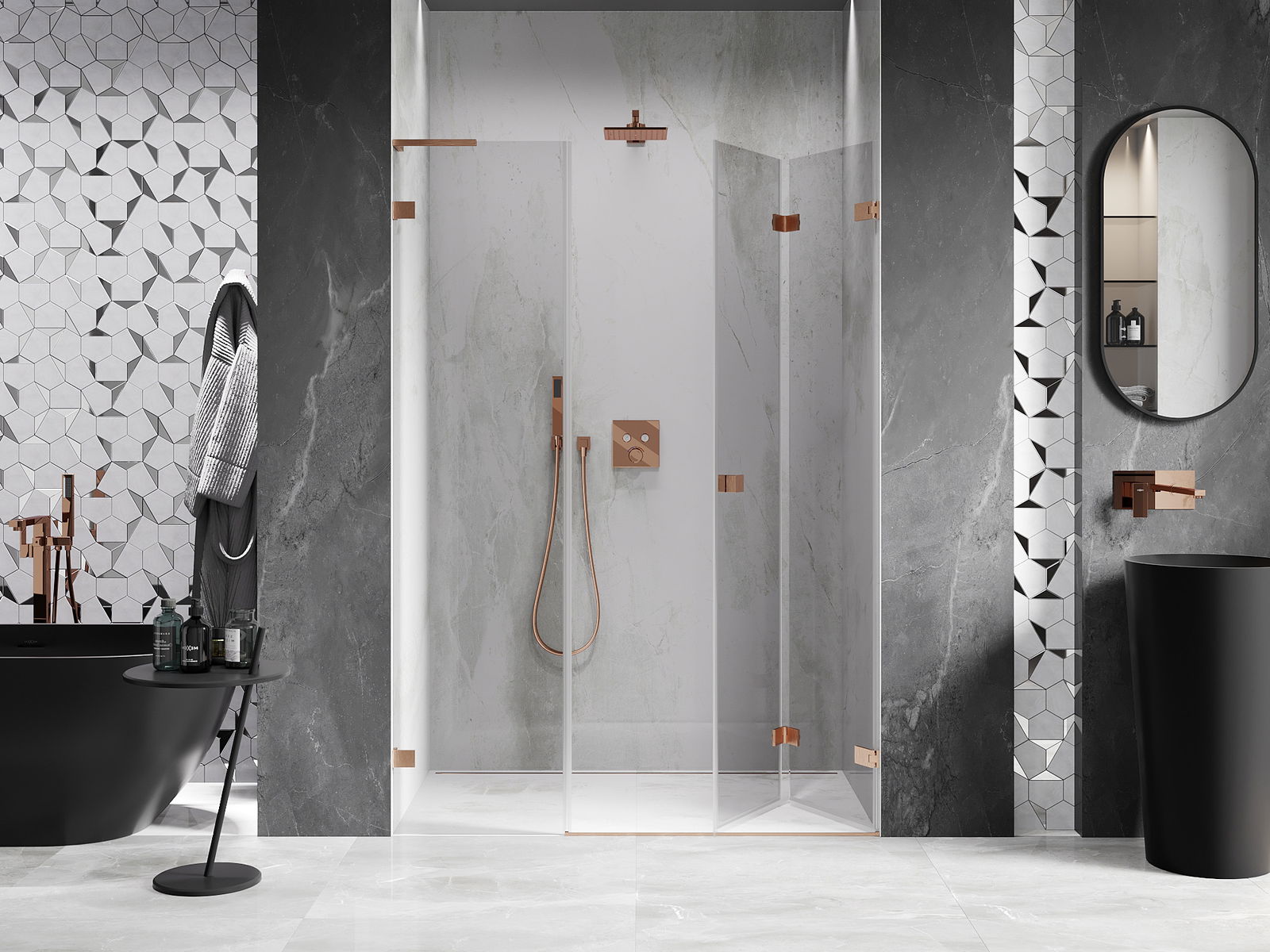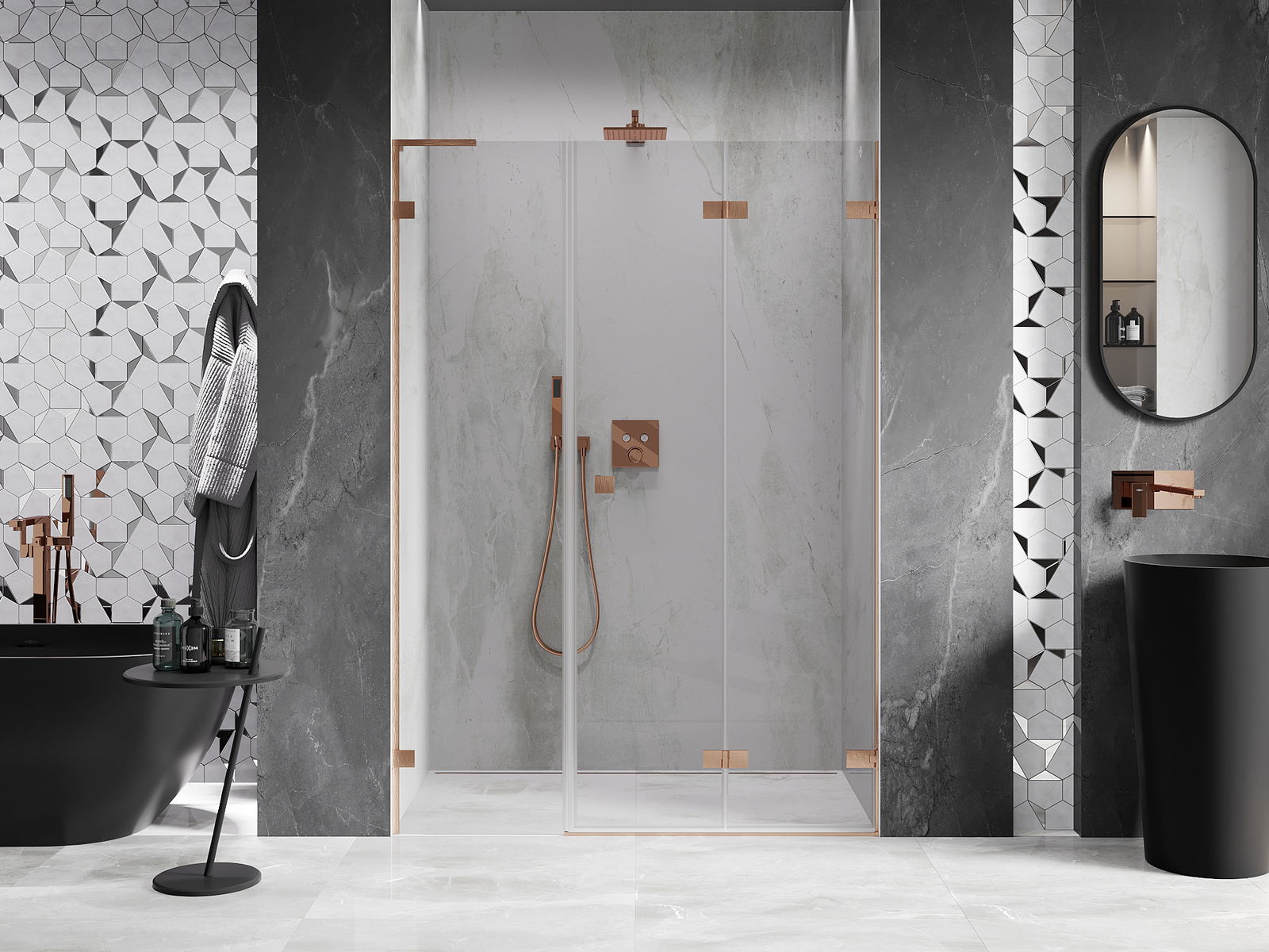Mexen Lunar-F L uși de duș pliabile dreapta 135 cm, transparent, cupru periat - 836SL-135-050-65-00-P