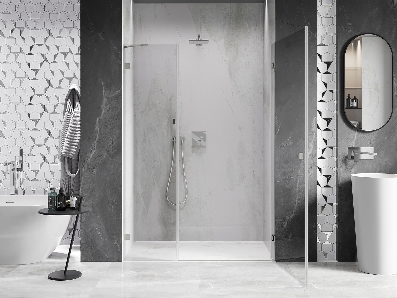 Grosimea sticlei: ușă 6 mm, perete 8 mm