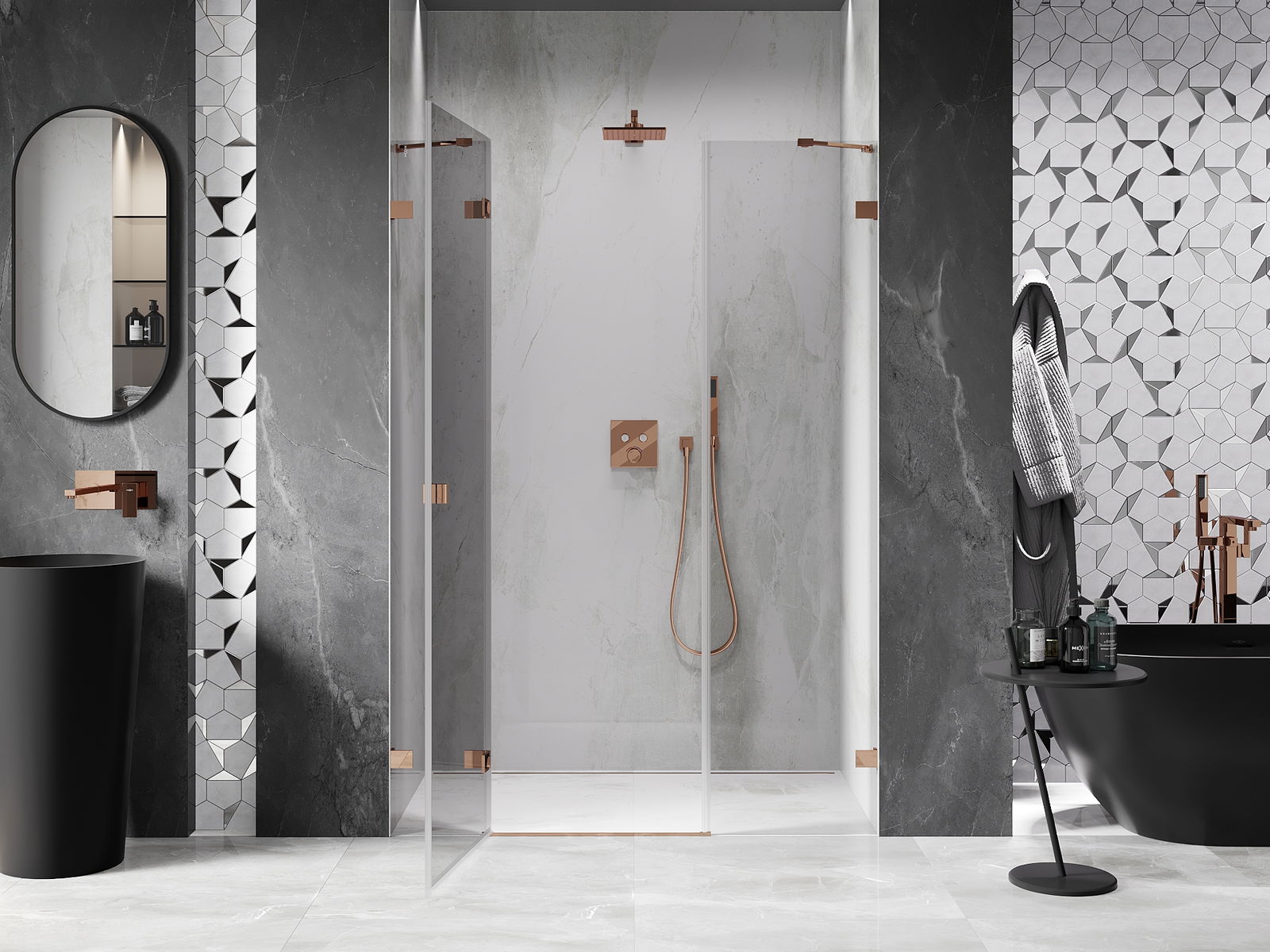 Mexen Lunar uși de duș batante stânga 145 cm, transparent, aur roz - 834S-145-050-60-00-L