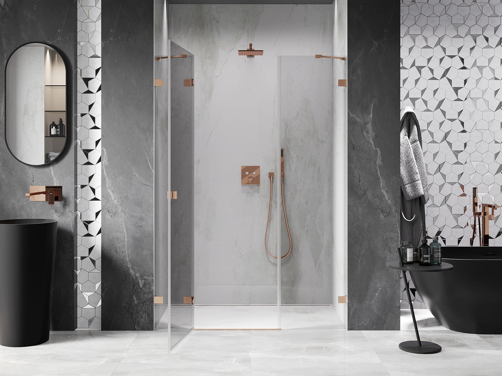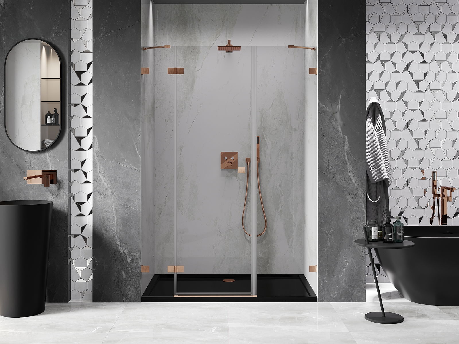 Mexen Lunar ușă de duș batantă stânga 120 cm, transparentă, cupru periat - 834S-120-050-65-00-L