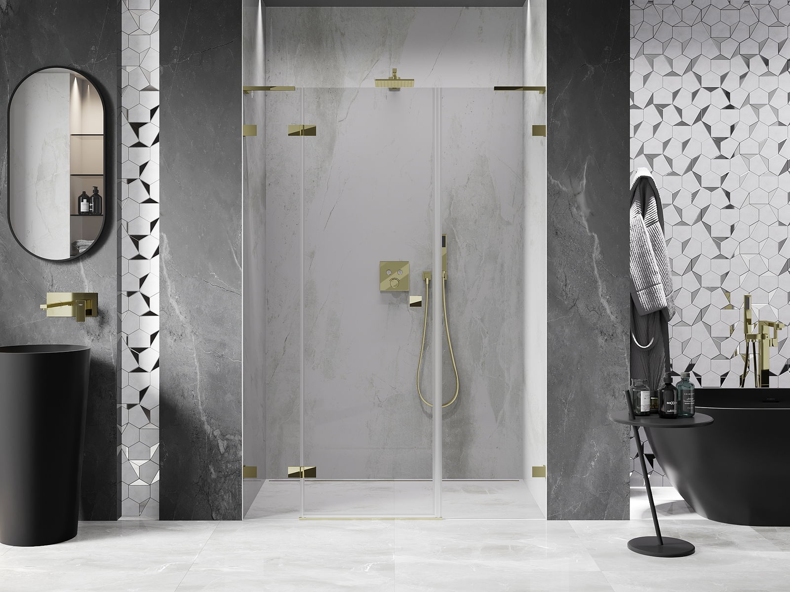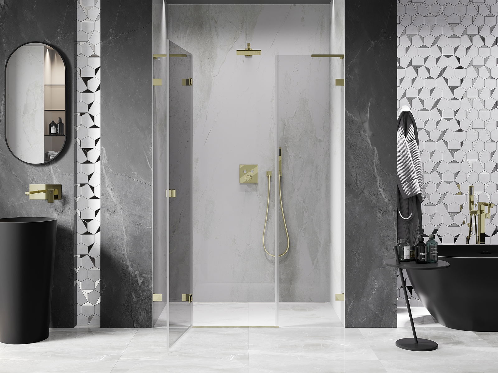 Clemele și balamalele sunt fabricate din alamă foarte durabilă și, în plus, formează o suprafață aliniată cu sticla. Este o alegere excelentă care îmbină eleganța, durabilitatea și designul modern. Datorită acestor soluții, dușul câștigă în estetică și facilitează întreținerea curățeniei.