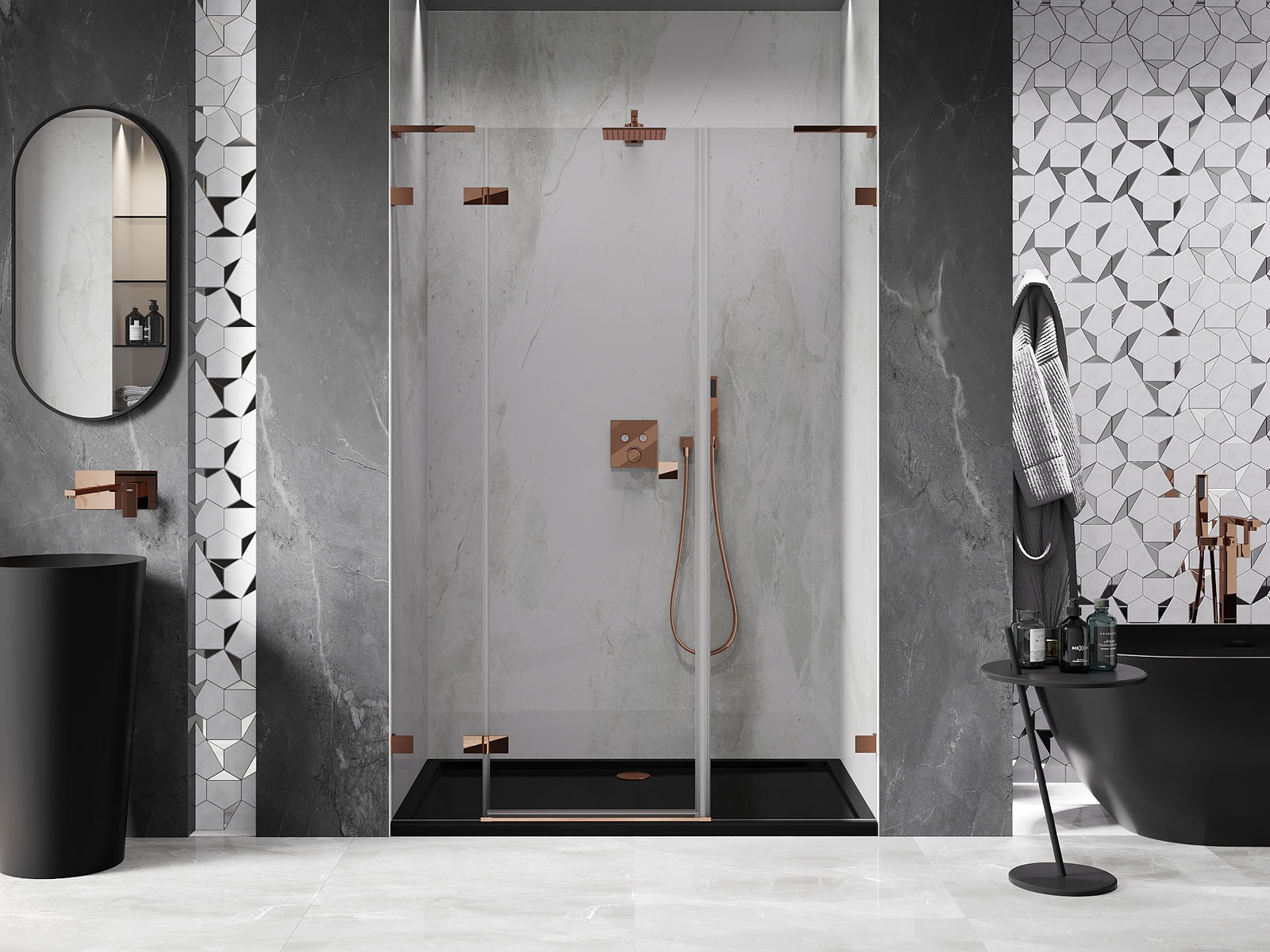 Clemele și balamalele sunt fabricate din alamă foarte durabilă și, în plus, formează o suprafață aliniată cu sticla. Este o alegere excelentă care îmbină eleganța, durabilitatea și designul modern. Datorită acestor soluții, dușul câștigă în estetică și facilitează întreținerea curățeniei.