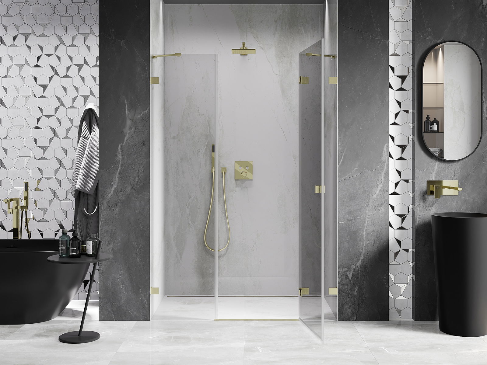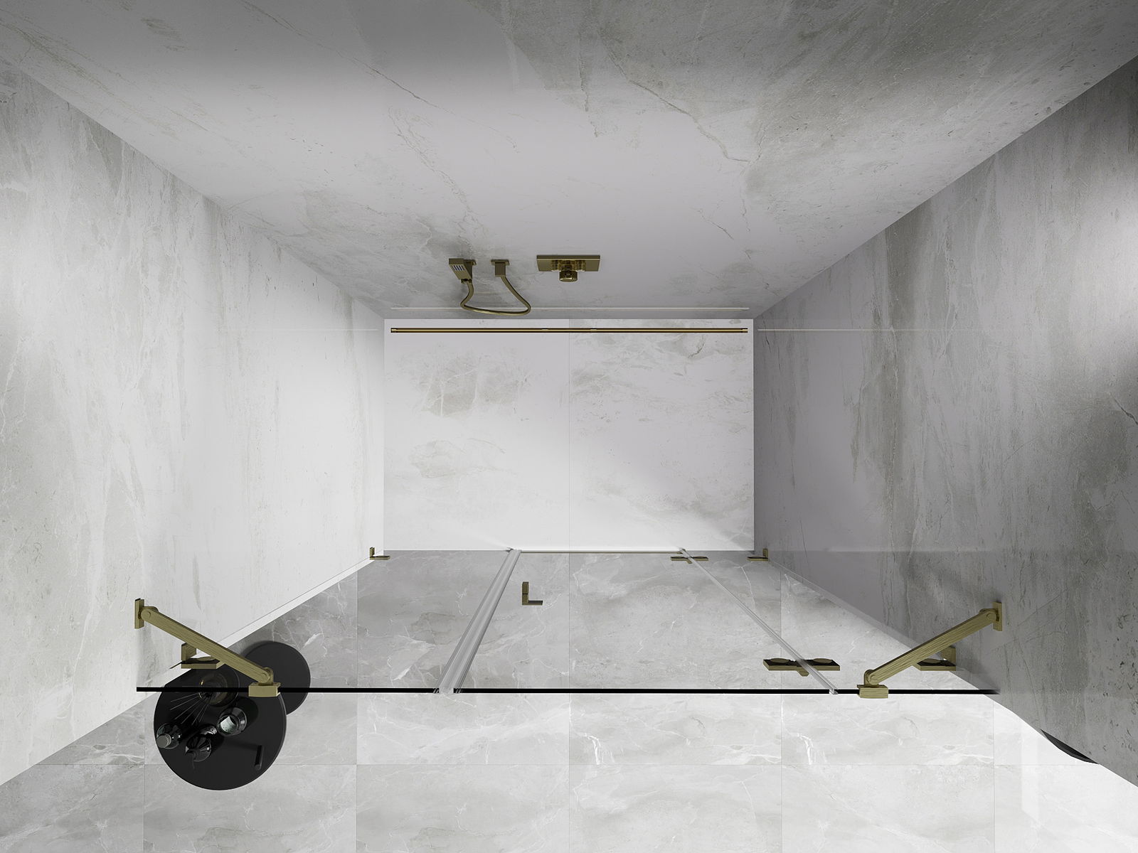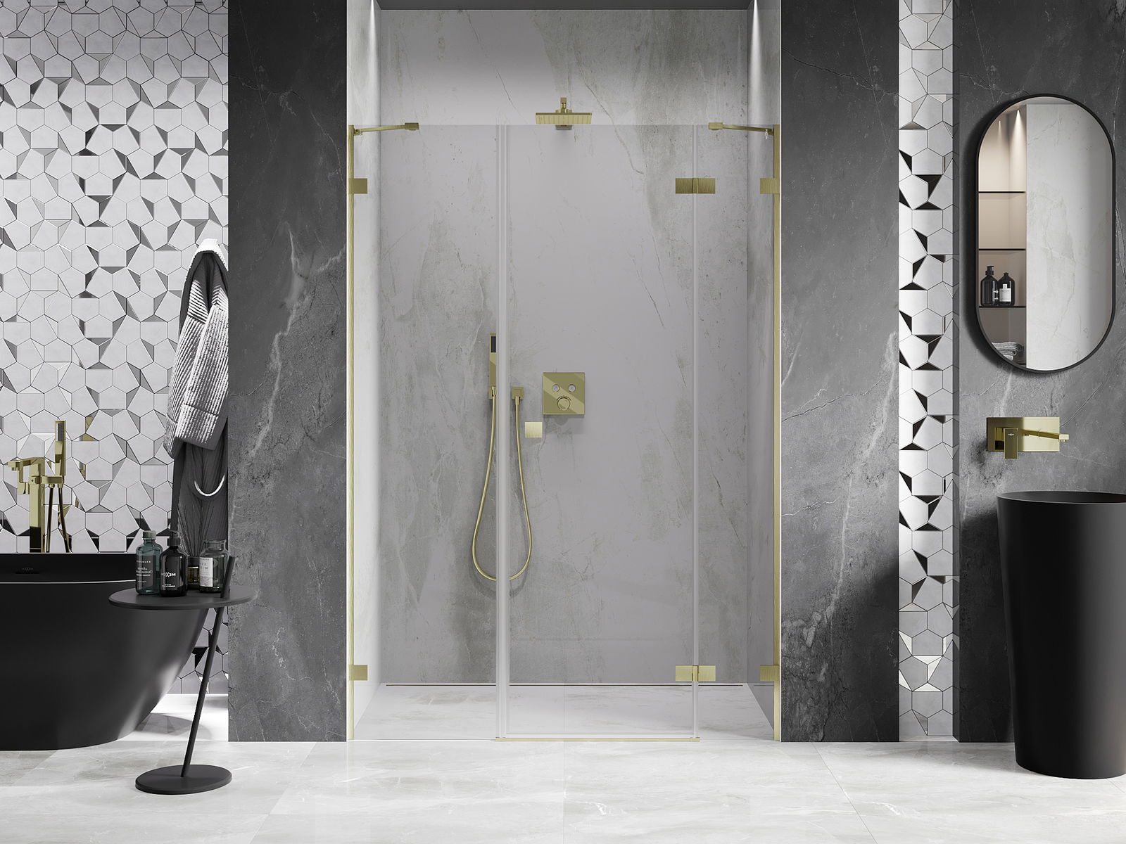 Mexen Lunar ușă de duș batantă dreapta 155 cm, transparentă, finisaj auriu periat - 834S-155-050-55-00-P