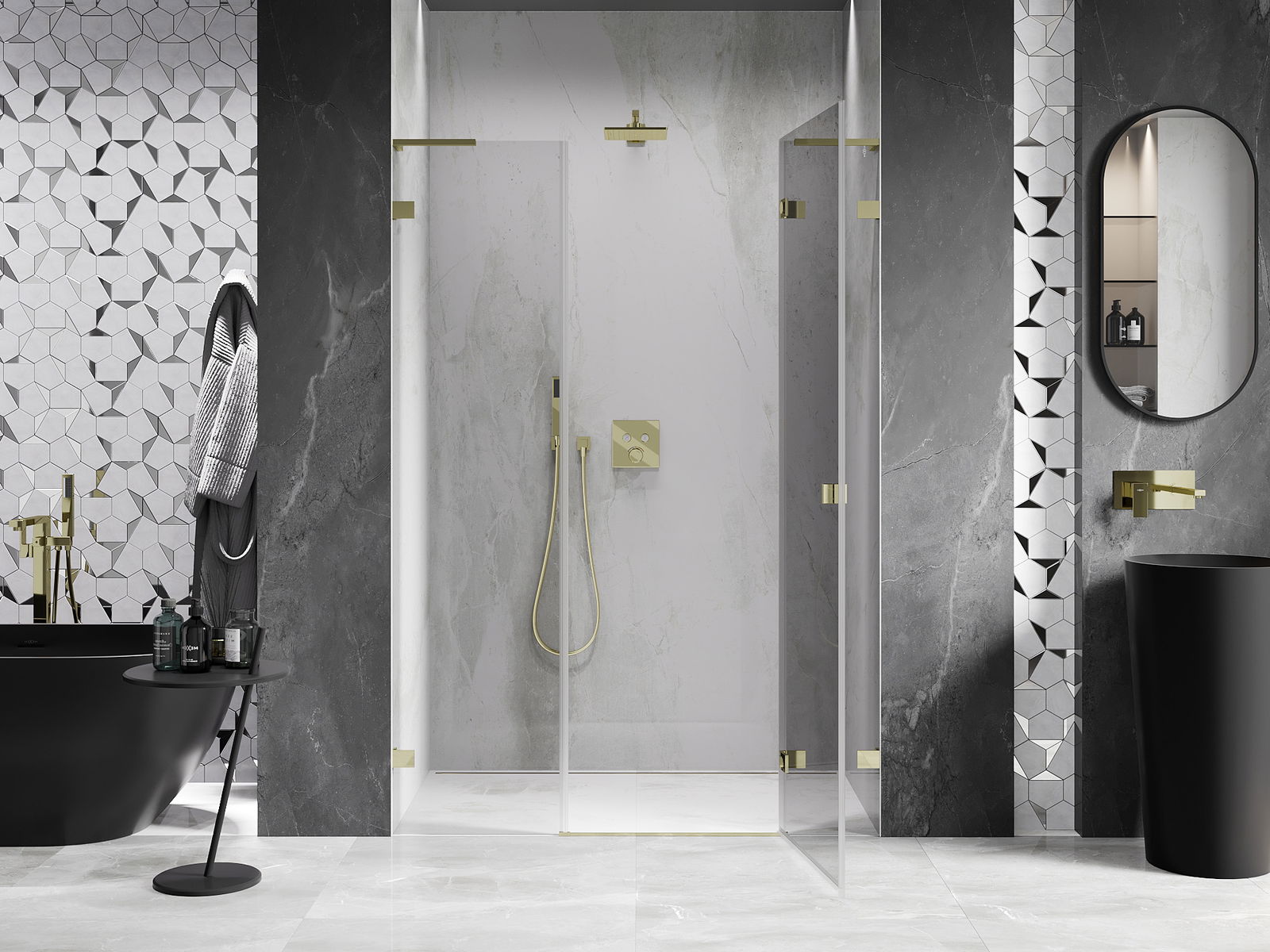 Mexen Lunar L uși de duș batante dreapta 150 cm, transparent, auriu - 834SL-150-050-50-00-P