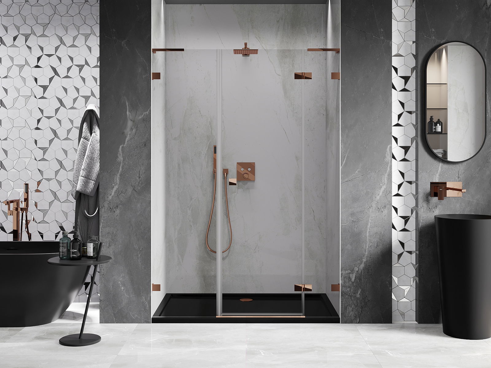 Mexen Lunar L uși de duș pivotante dreapta 160 cm, transparent, aur roz - 834SL-160-050-60-00-P