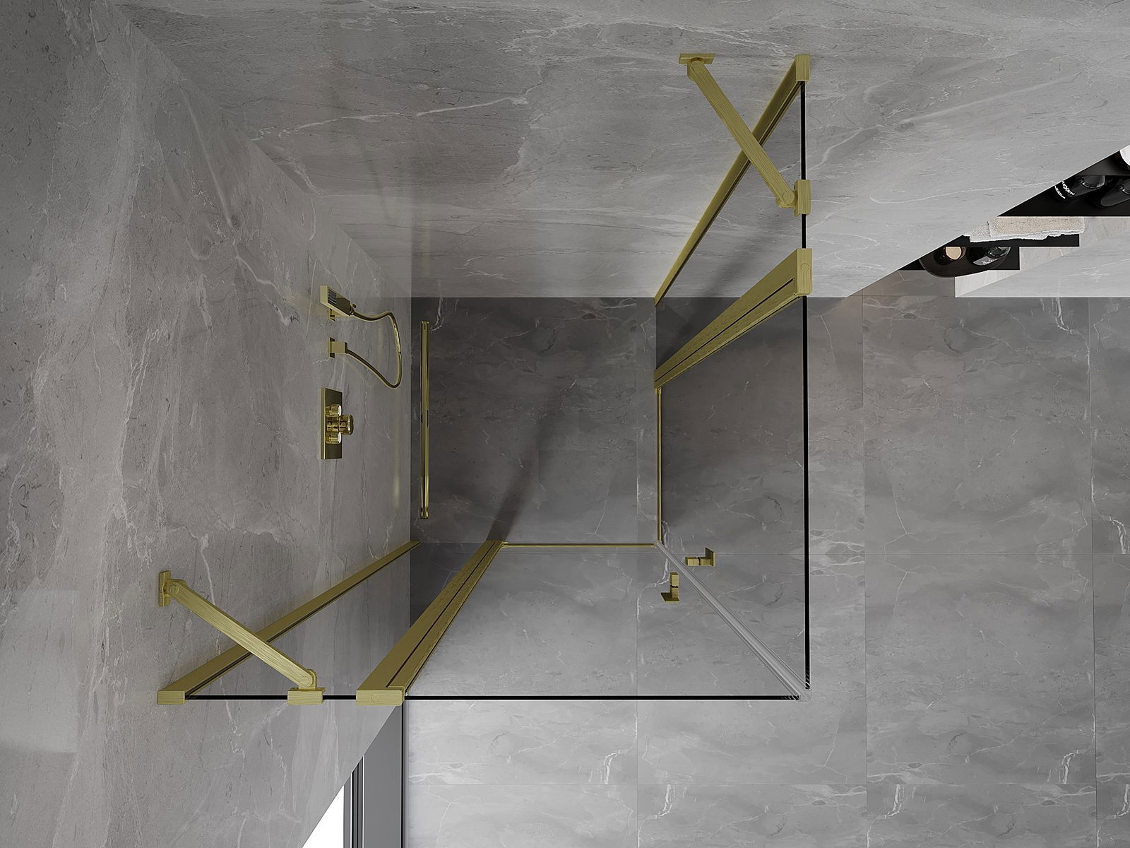Mexen Mist Duo cabină de duș cu deschidere 105 x 105 cm, transparent, auriu periat - 8A4-105-105-55-00
