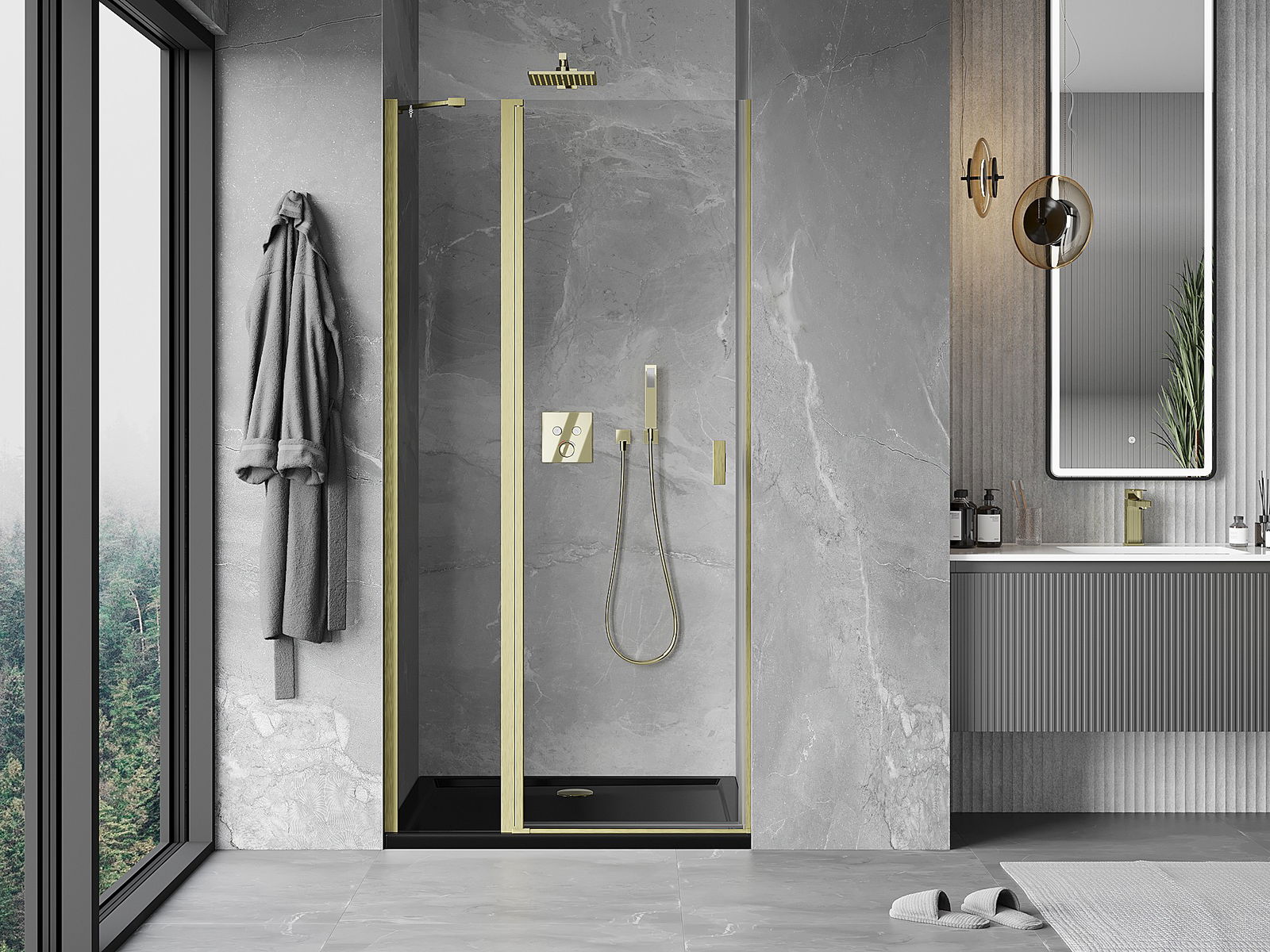 Mânerul practic și confortabil este realizat din metal durabil și rezistent. Forma modernă, combinată cu un finisaj asortat cu culoarea profilelor, conferă un aspect modern și elegant întregului, subliniind estetica fiecărei băi.