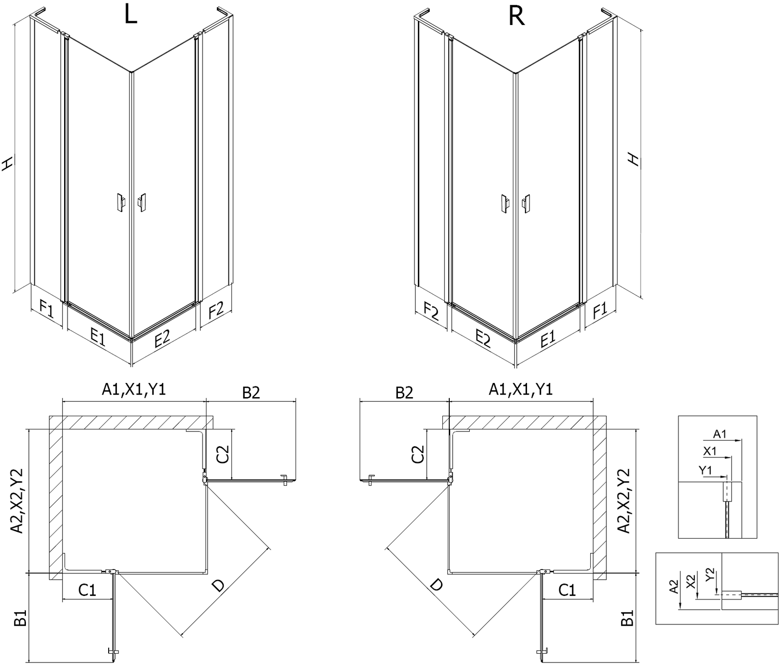 Datorită utilizării unui sistem universal de montare, ușile de duș pot fi montate fie pe partea dreaptă, fie pe partea stângă, în funcție de necesități. Astfel, poți proiecta cu ușurință un duș adaptat spațiului băii.
