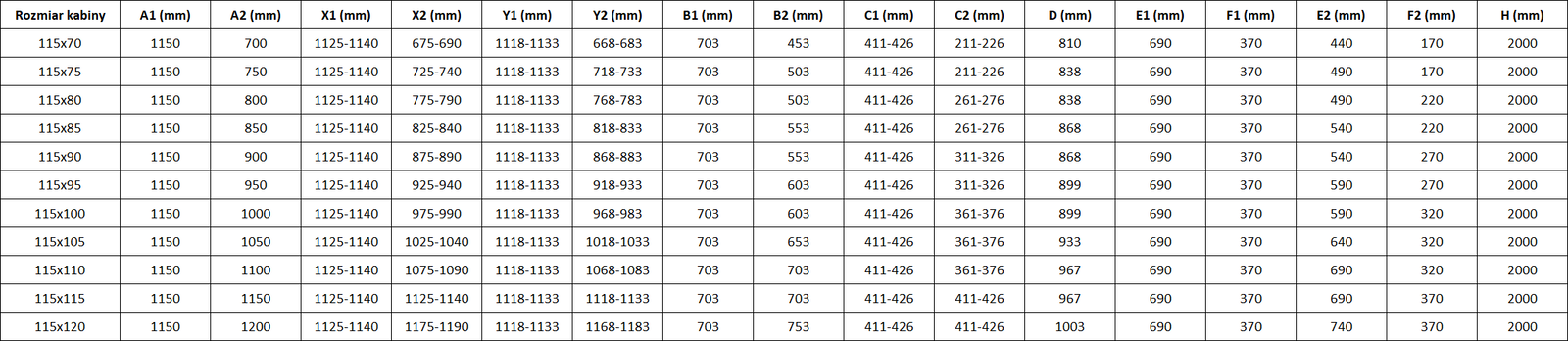 Dimensiuni: 115x85 cm (ușă stânga 115 cm, ușă dreapta 85 cm)
