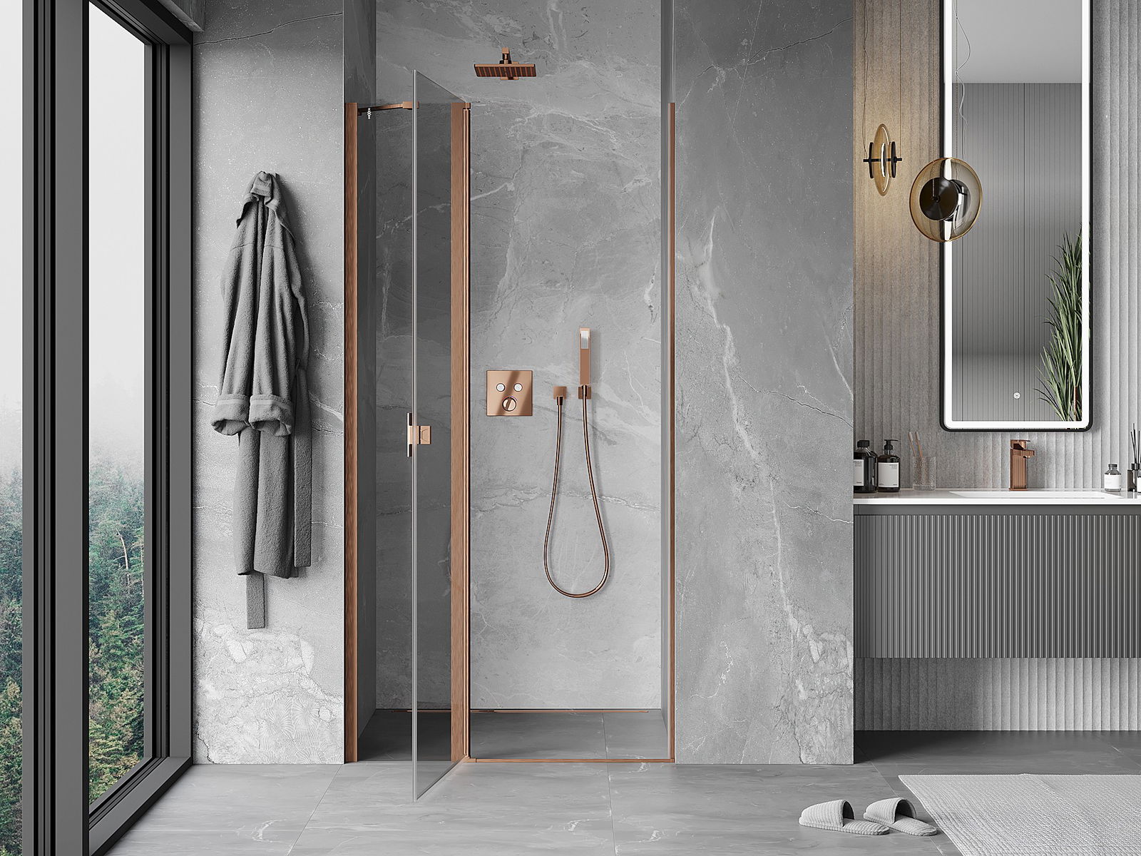 Mexen Mist ușă de duș batantă 110 cm, transparentă, cupru periat - 8A4-110-000-65-00