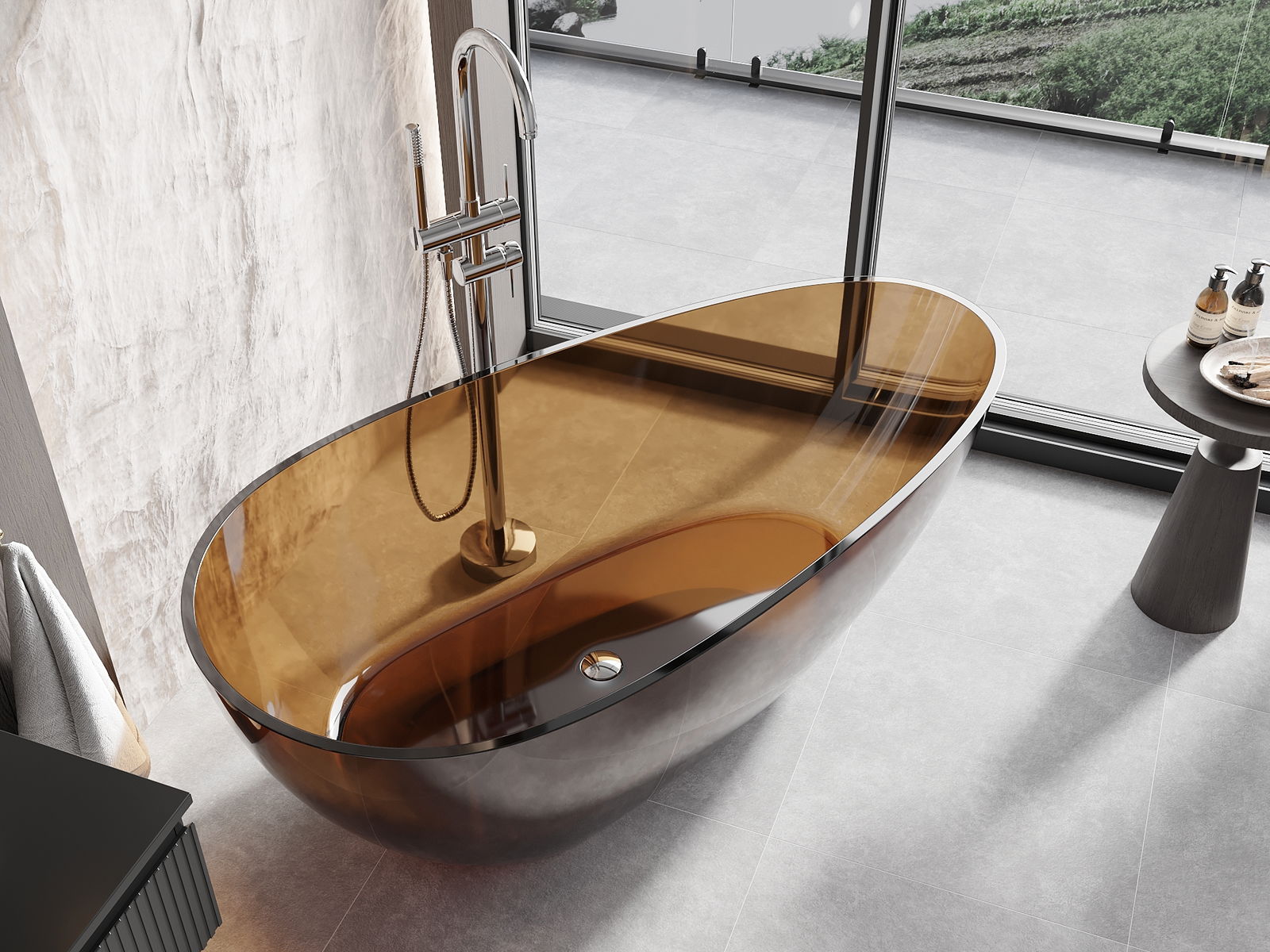 Este un material modern care combină un aspect elegant cu o durabilitate ridicată. Este rezistent la deteriorări mecanice, ușor de curățat și plăcut la atingere. Forma transparentă și marginea subțire a căzii îi conferă lejeritate și un caracter unic, creând un accent spectaculos în amenajarea băii.