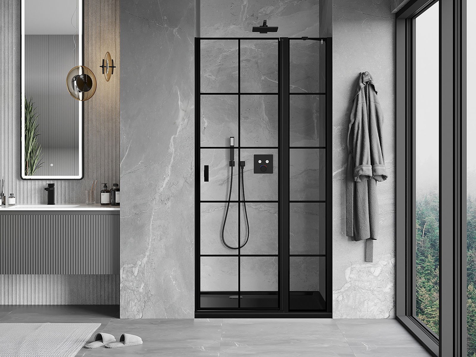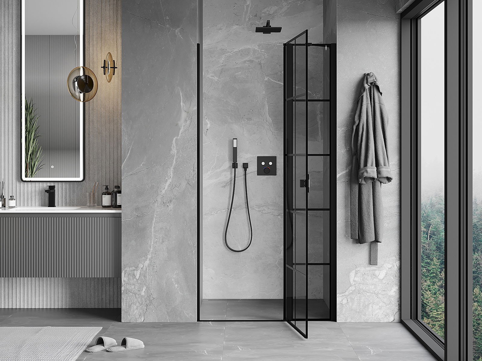 Mânerul practic și confortabil este realizat din metal durabil și rezistent. Forma modernă, combinată cu un finisaj asortat cu culoarea profilelor, conferă un aspect modern și elegant întregului, subliniind estetica fiecărei băi.