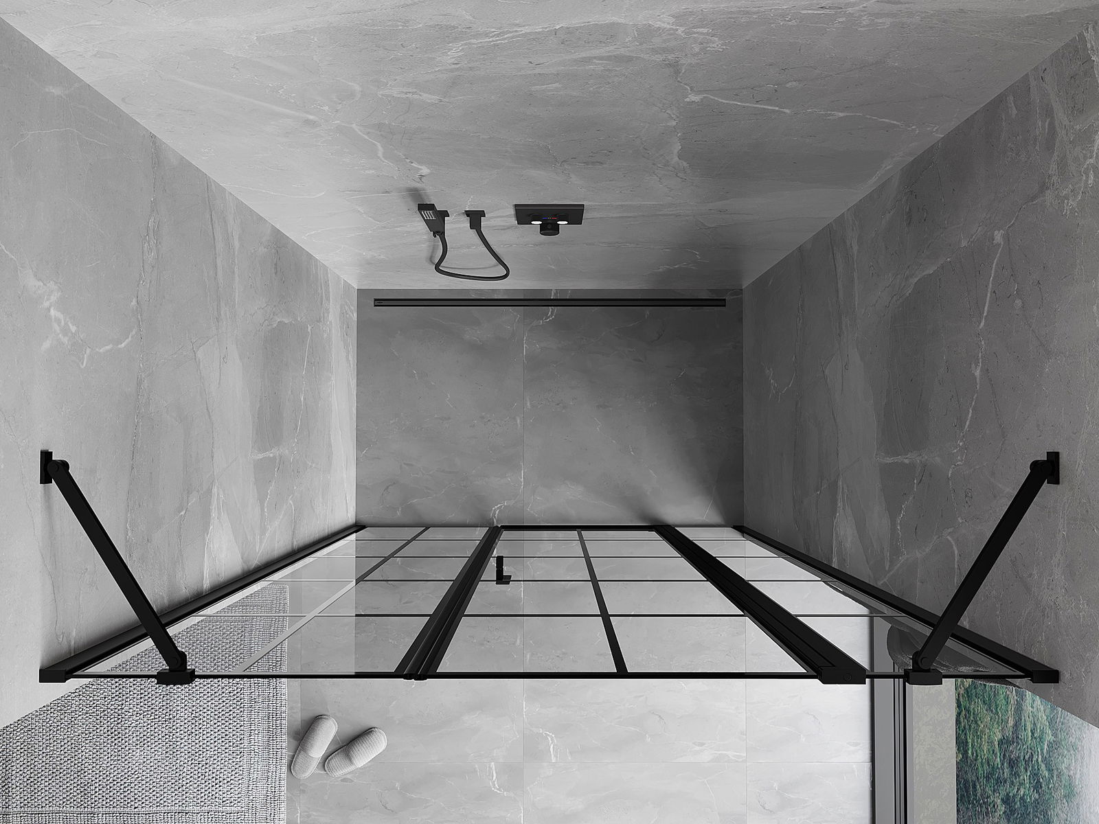 Mexen Mist ușă de duș batantă dreaptă 145 cm, grilaj negru, negru - 8A4-145-001-70-77-P