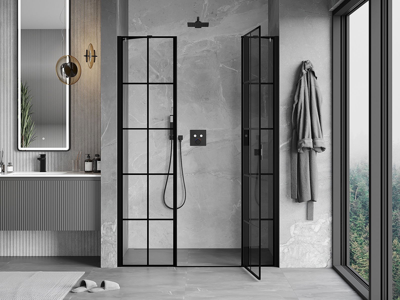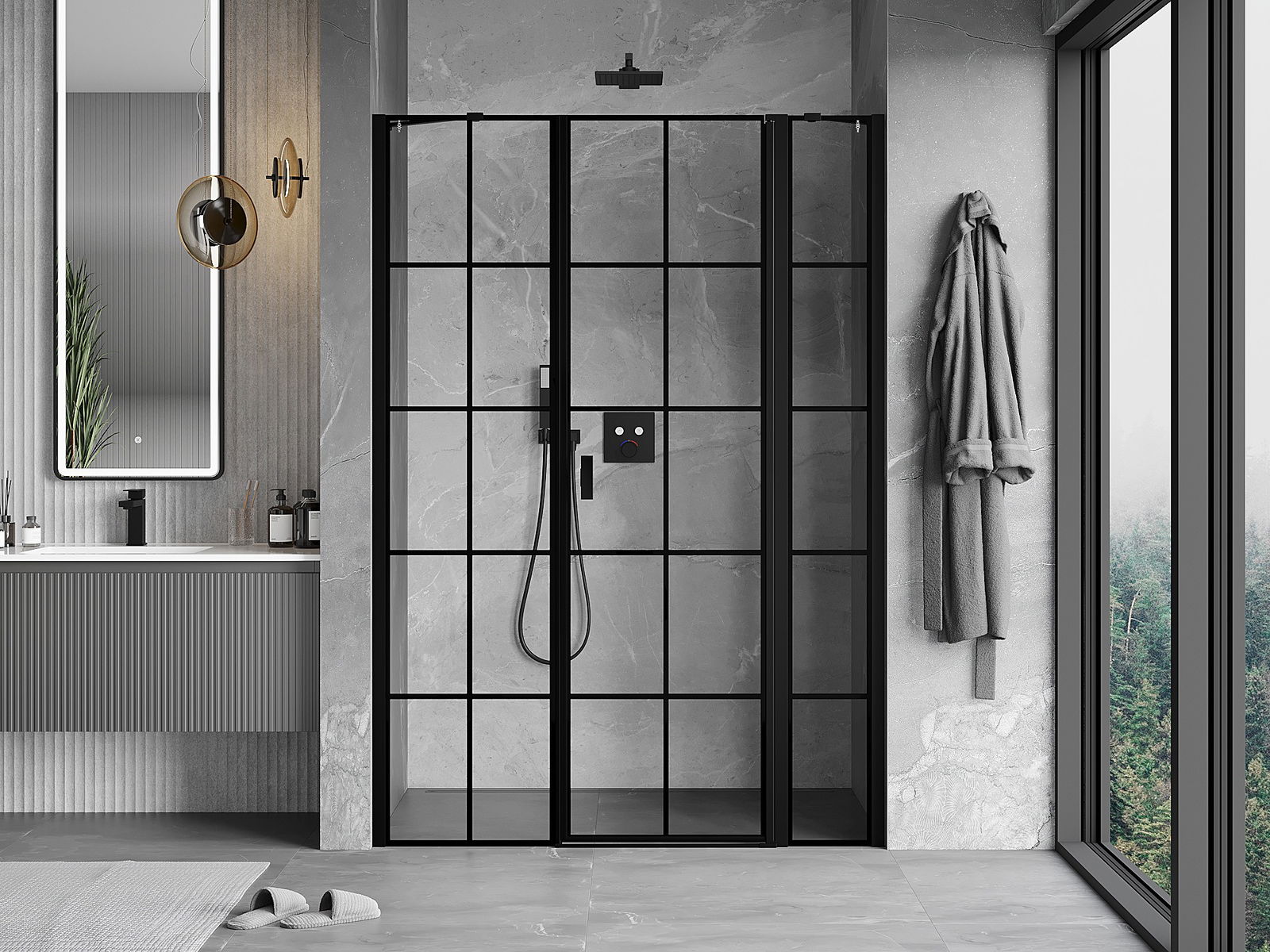 Mexen Mist uși de duș batante dreapta 155 cm, grilaj negru, negru - 8A4-155-001-70-77-P