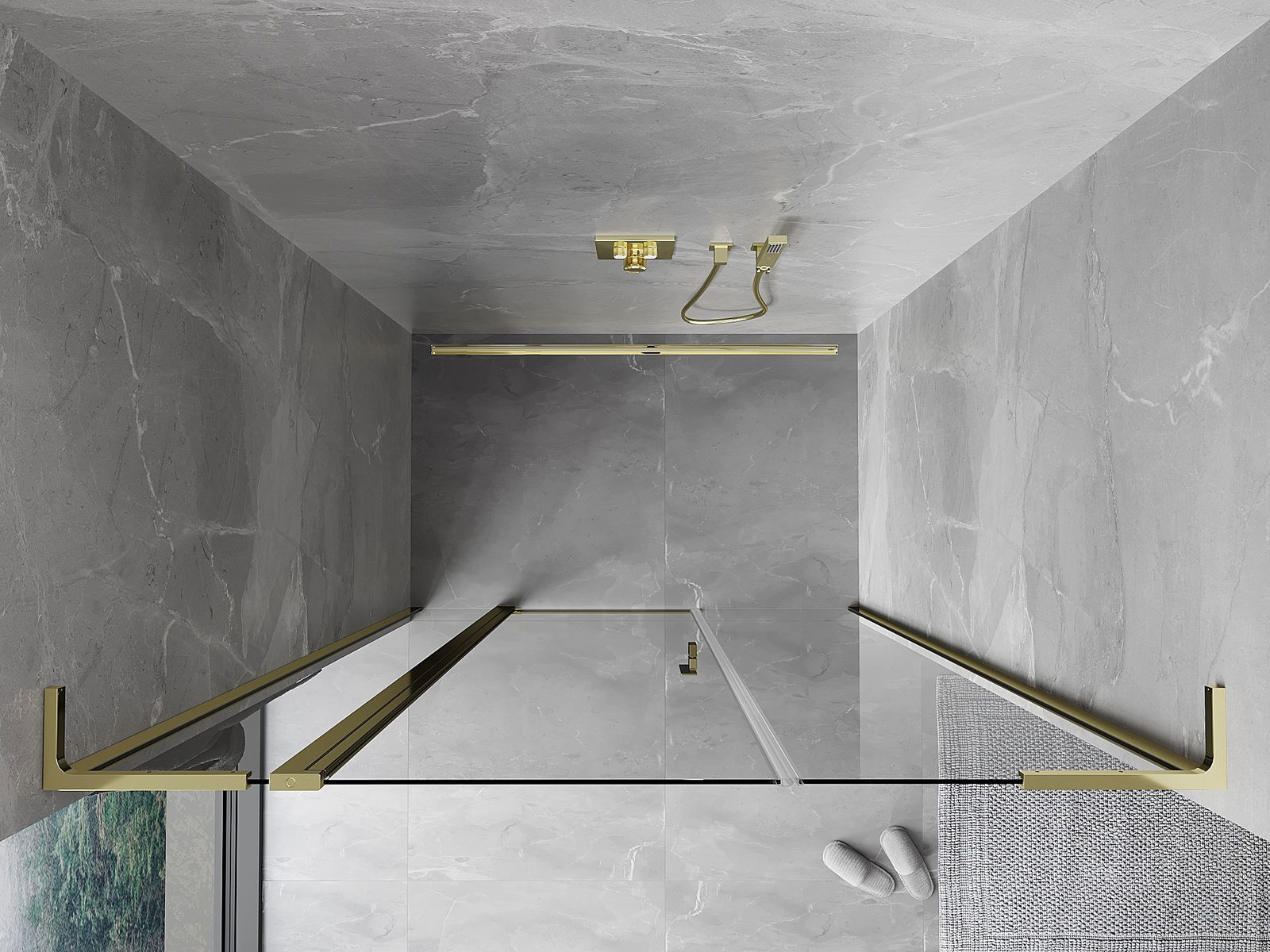 Mexen Mist L uși de duș pivotante 155 cm, transparente, aurii - 8A4L-155-001-50-00