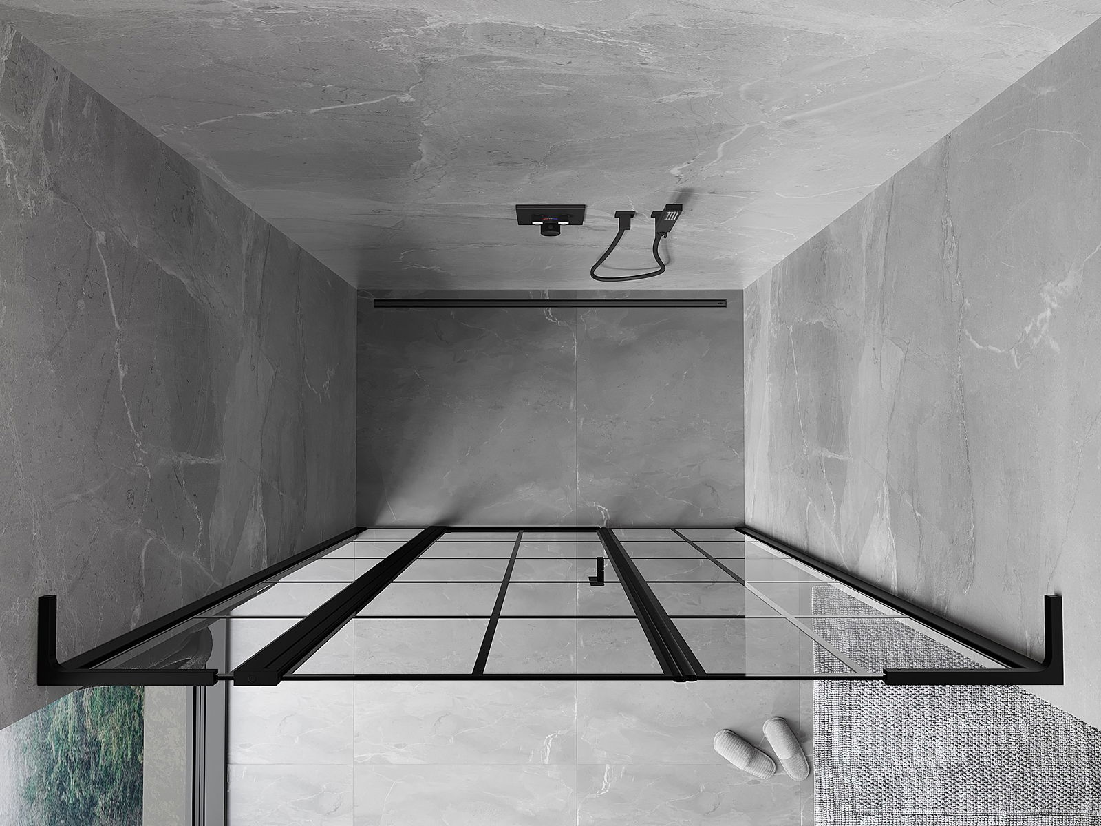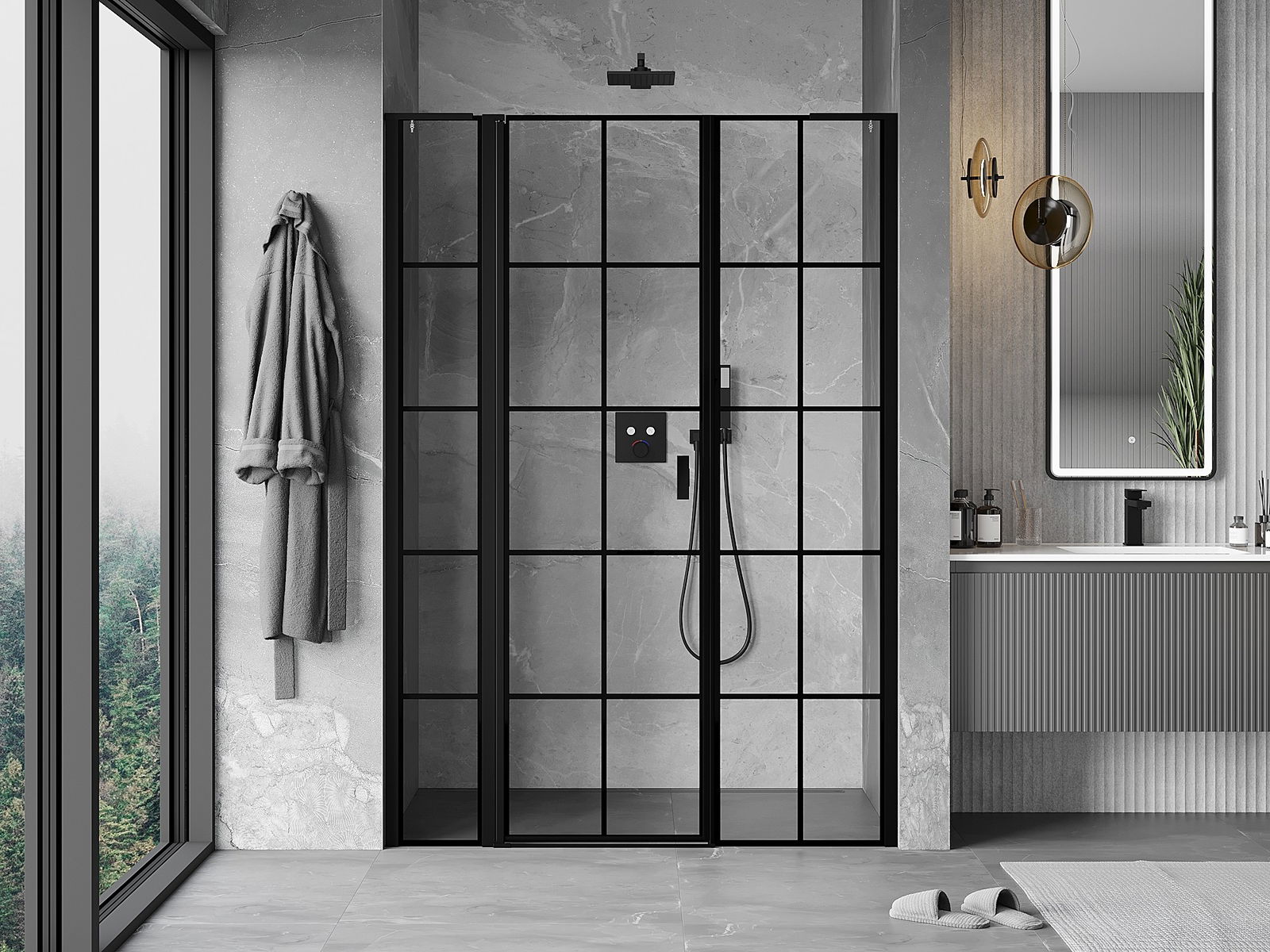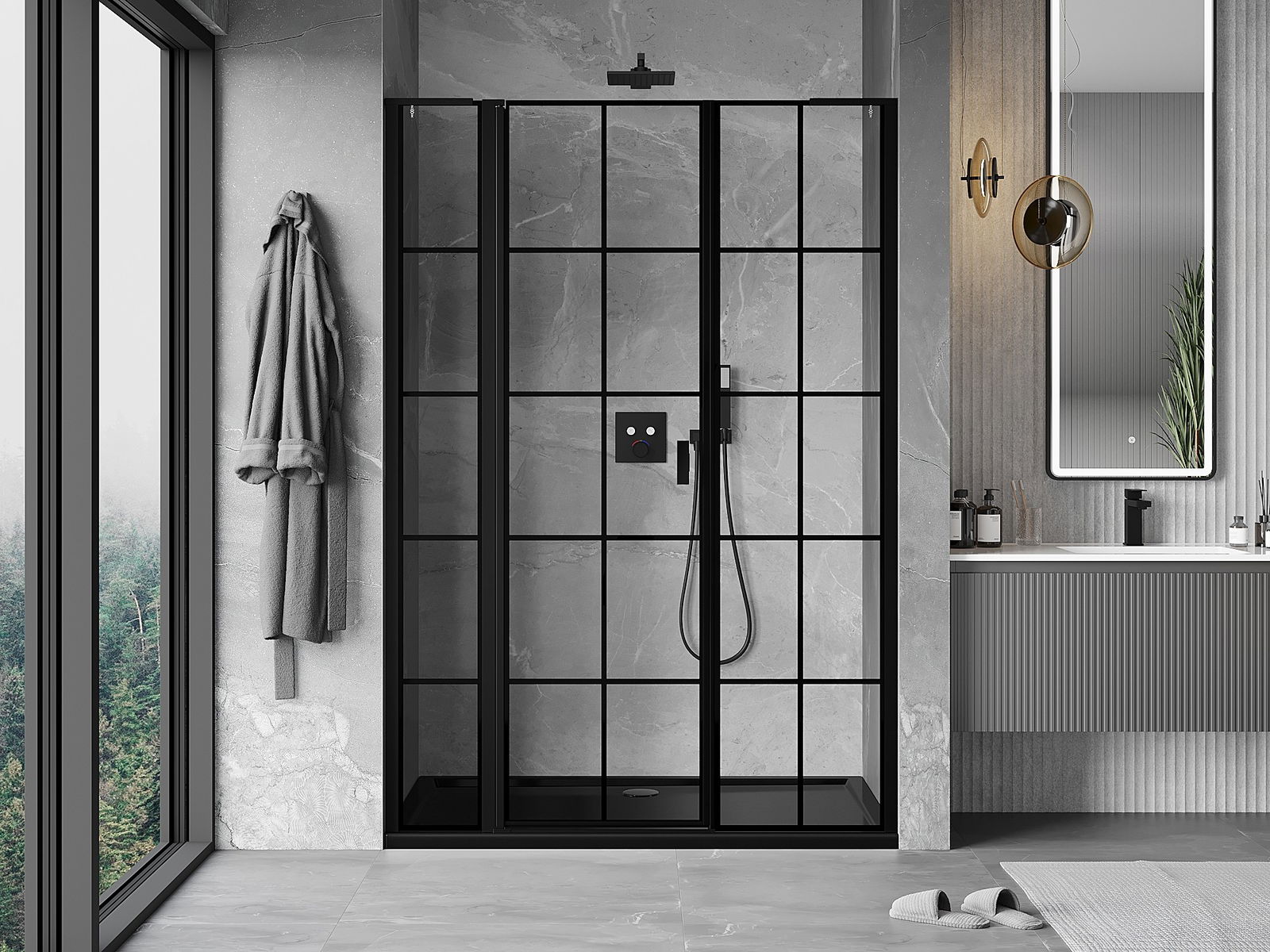 Mexen Mist L ușă de duș batantă stânga 145 cm, grilaj negru, negru - 8A4L-145-001-70-77-L
