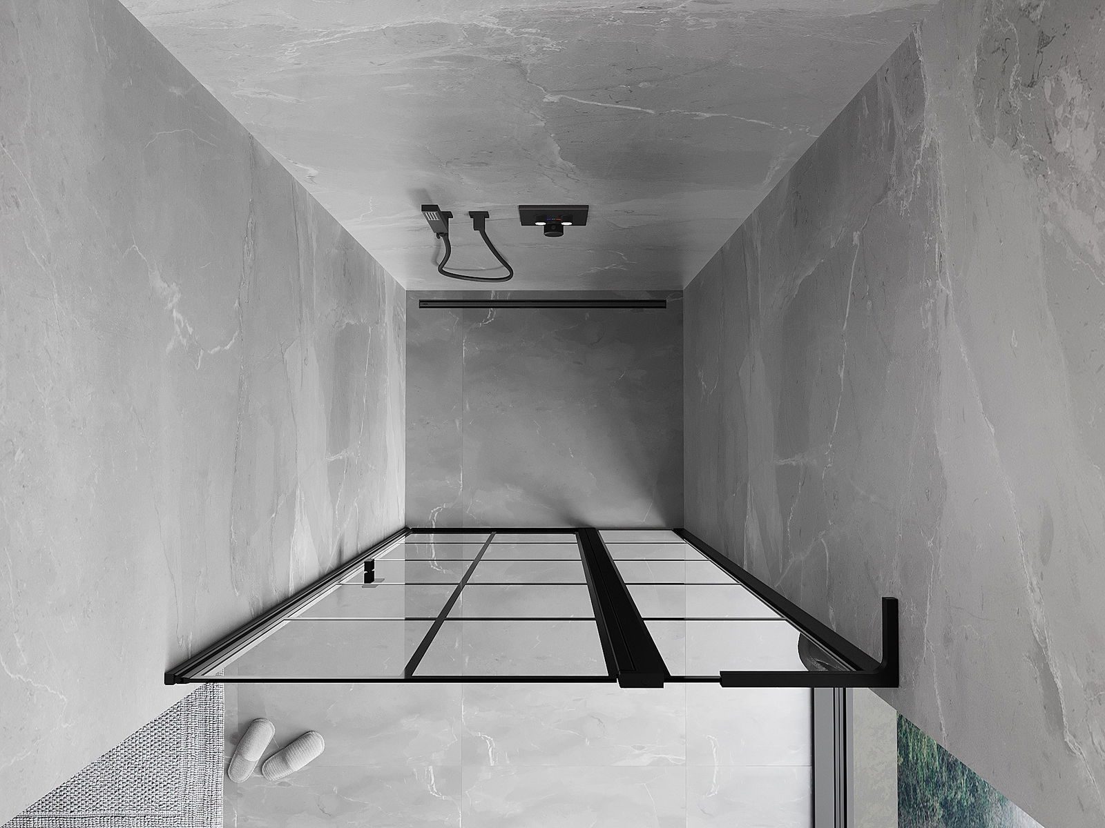 Mexen Mist L uși de duș batante dreapta 90 cm, grilaj negru, negru - 8A4L-090-000-70-77-P