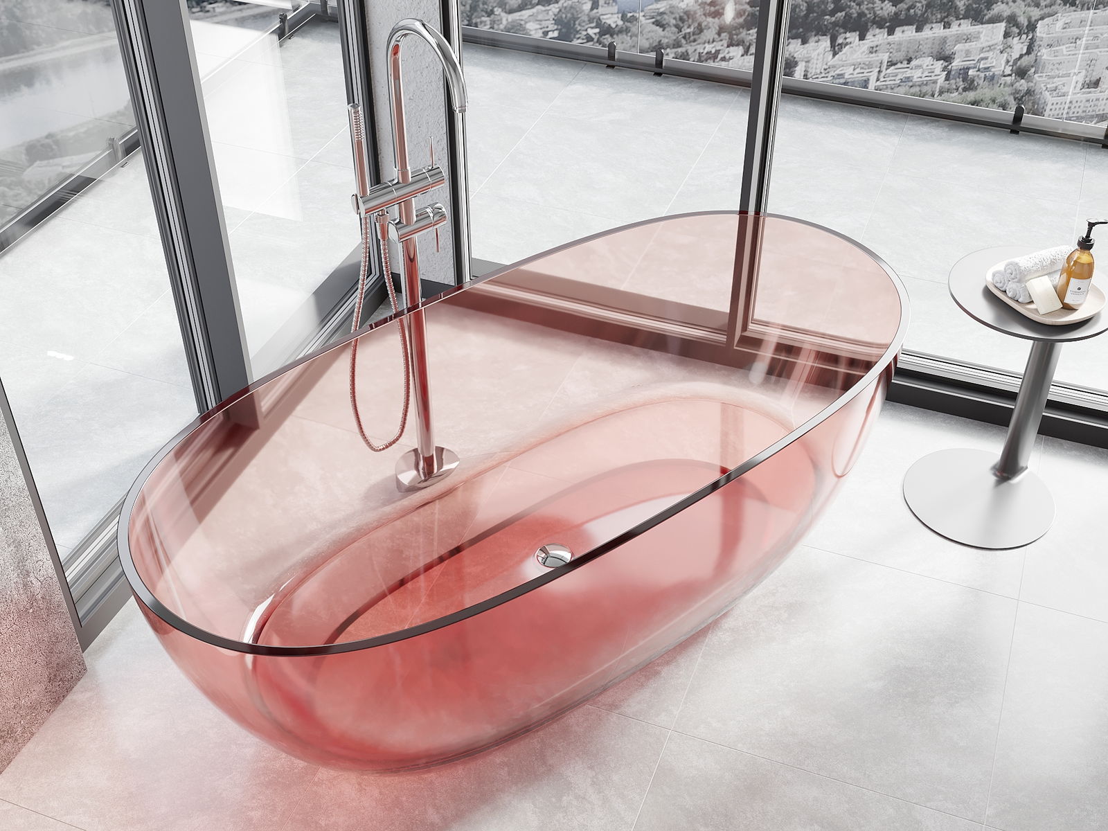 Este un material modern care combină un aspect elegant cu o durabilitate ridicată. Este rezistent la deteriorări mecanice, ușor de curățat și plăcut la atingere. Forma transparentă și marginea subțire a căzii îi conferă lejeritate și un caracter unic, creând un accent spectaculos în amenajarea băii.