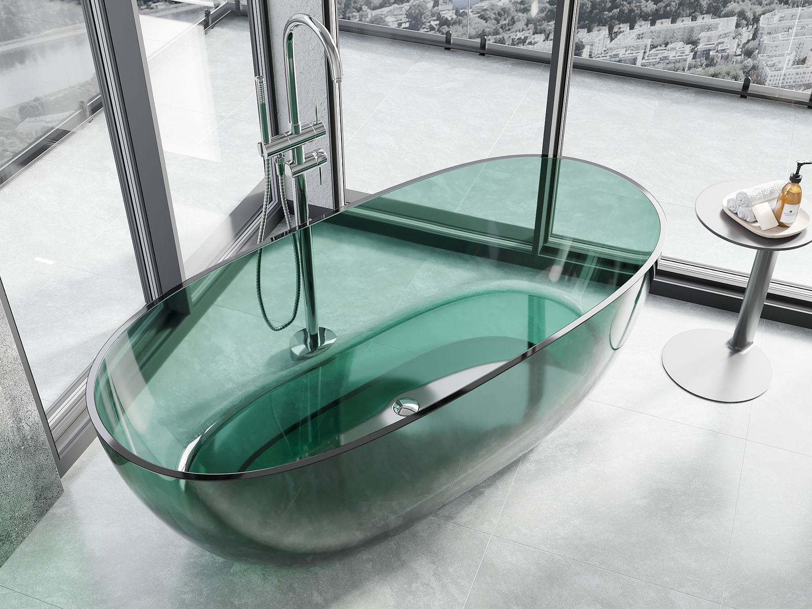 Este un material modern care combină un aspect elegant cu o durabilitate ridicată. Este rezistent la deteriorări mecanice, ușor de curățat și plăcut la atingere. Forma transparentă și marginea subțire a căzii îi conferă lejeritate și un caracter unic, creând un accent spectaculos în amenajarea băii.