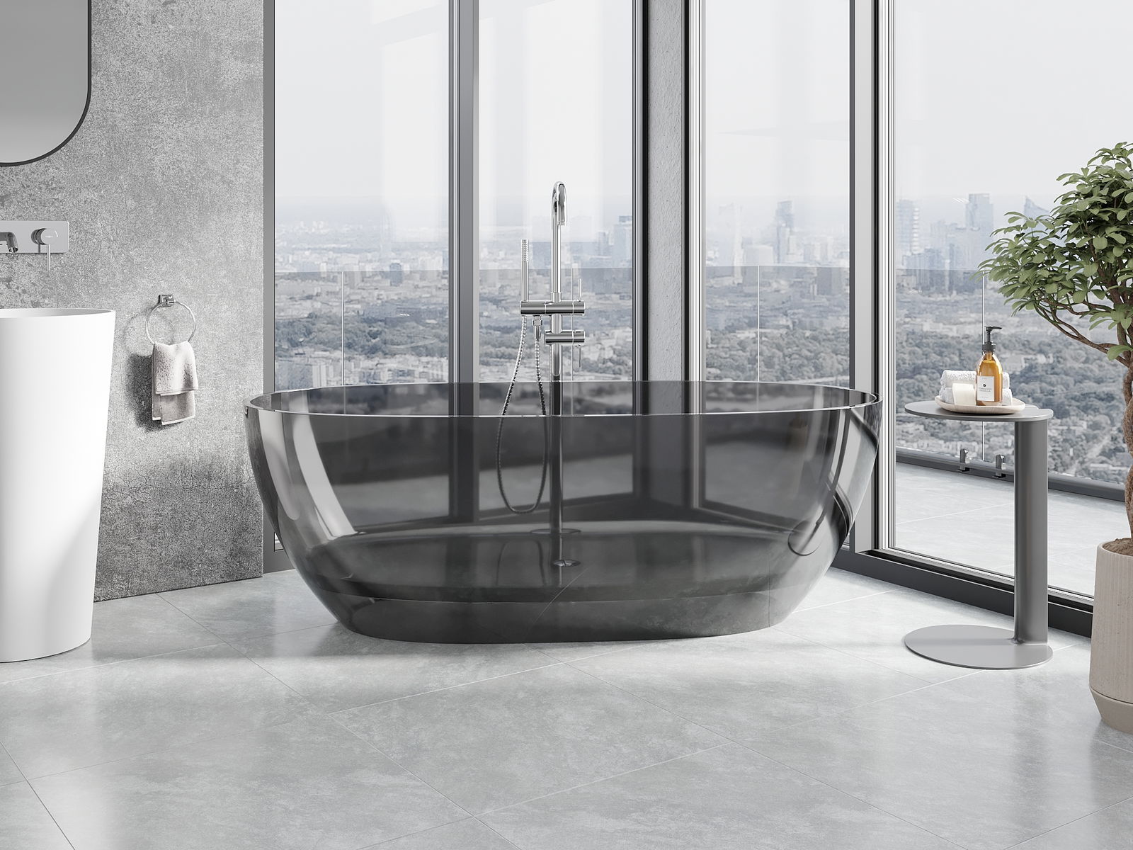 Este un material modern care combină un aspect elegant cu o durabilitate ridicată. Este rezistent la deteriorări mecanice, ușor de curățat și plăcut la atingere. Forma transparentă și marginea subțire a căzii îi conferă lejeritate și un caracter unic, creând un accent spectaculos în amenajarea băii.