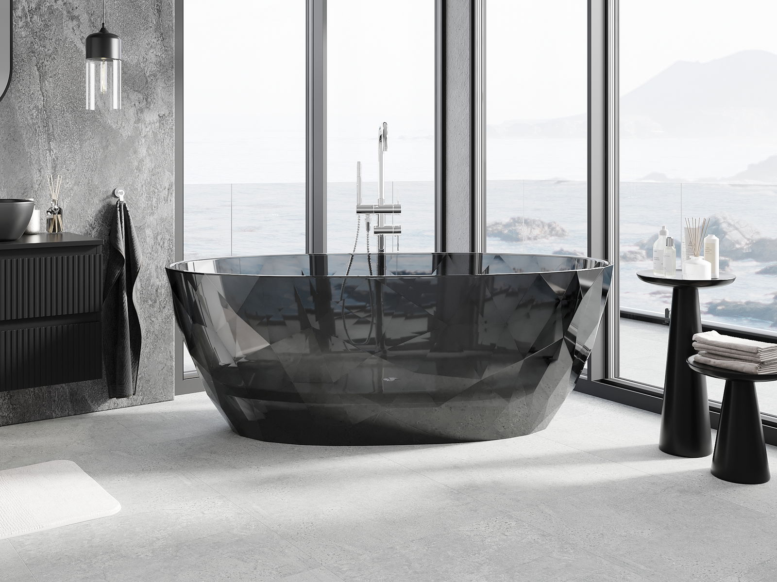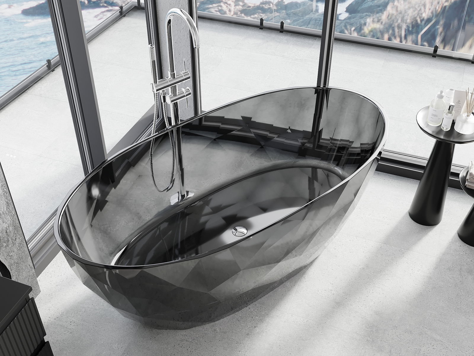 Este un material modern care combină un aspect elegant cu o durabilitate ridicată. Este rezistent la deteriorări mecanice, ușor de curățat și plăcut la atingere. Forma transparentă și marginea subțire a căzii îi conferă lejeritate și un caracter unic, creând un accent spectaculos în amenajarea băii.