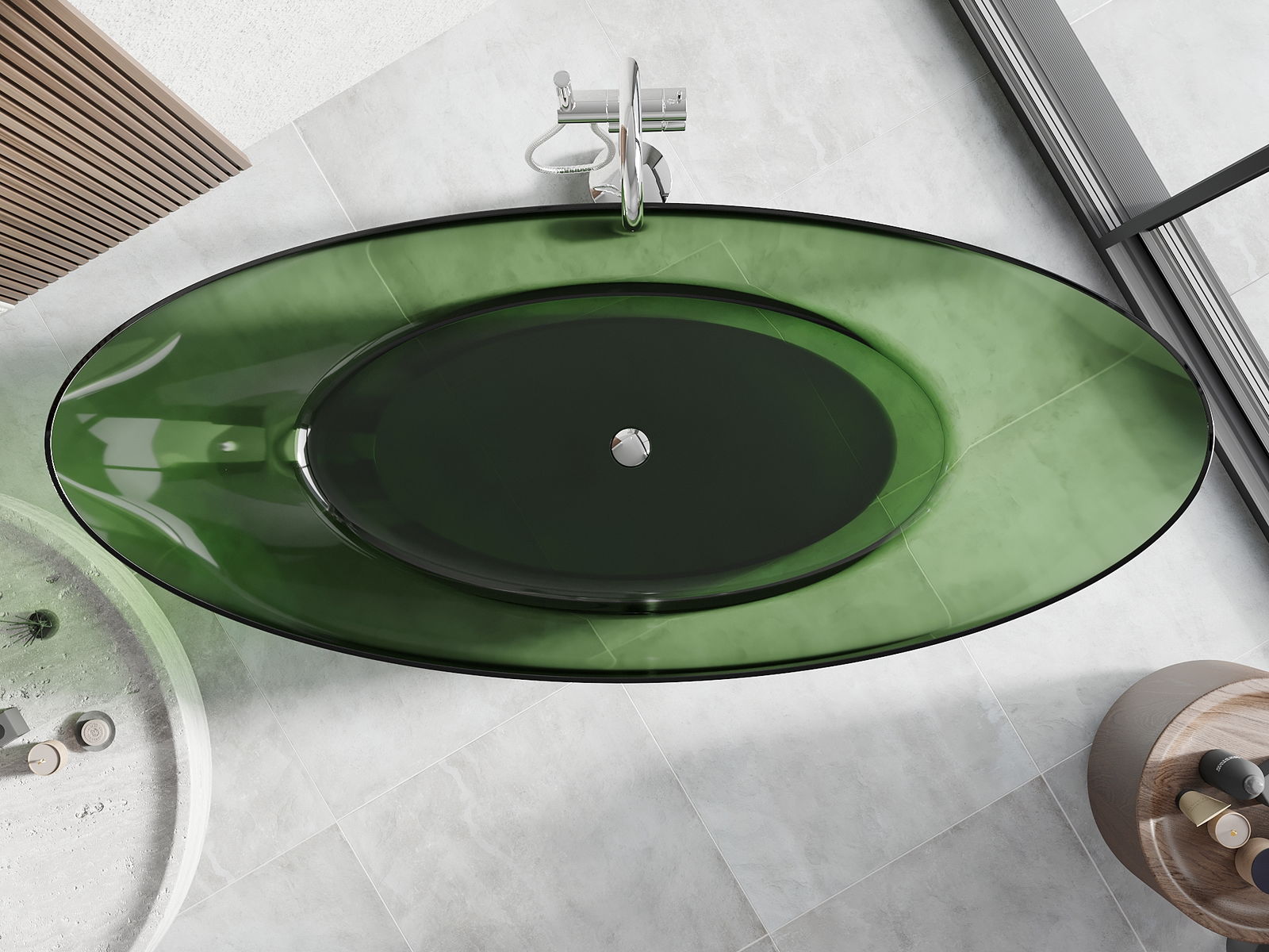 Este un material modern care combină un aspect elegant cu o durabilitate ridicată. Este rezistent la deteriorări mecanice, ușor de curățat și plăcut la atingere. Forma transparentă și marginea subțire a căzii îi conferă lejeritate și un caracter unic, creând un accent spectaculos în amenajarea băii.