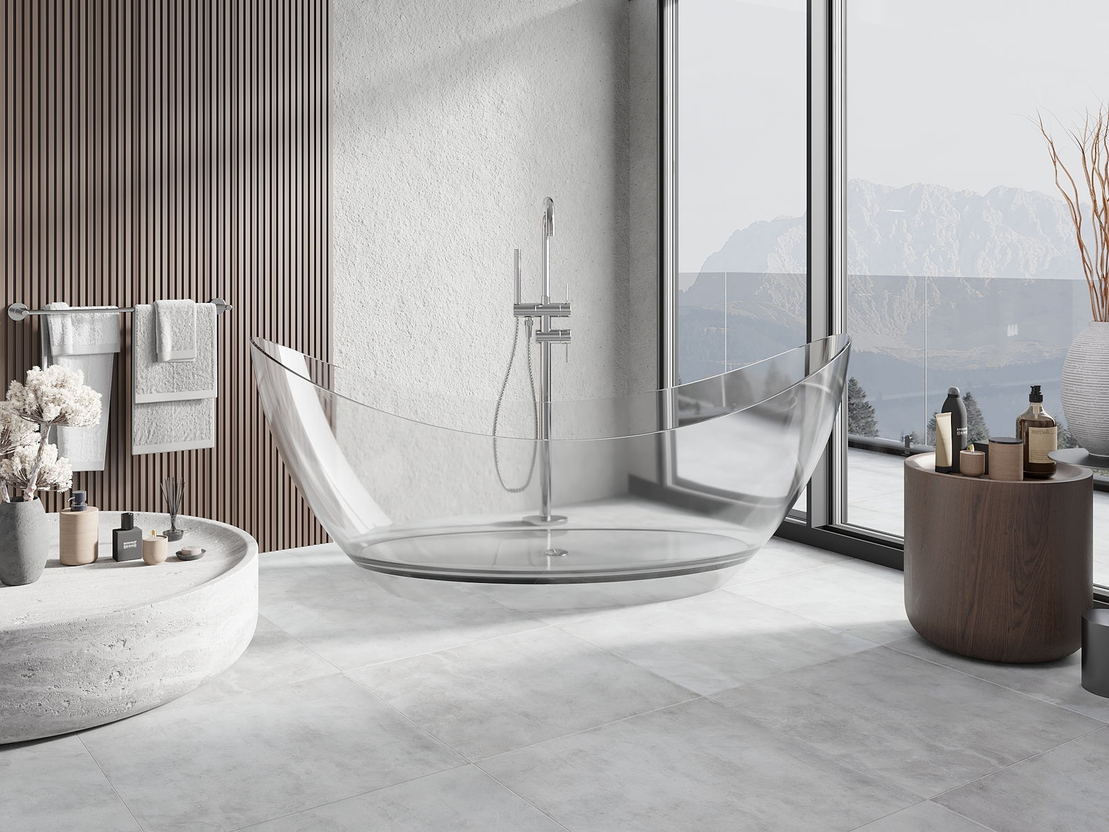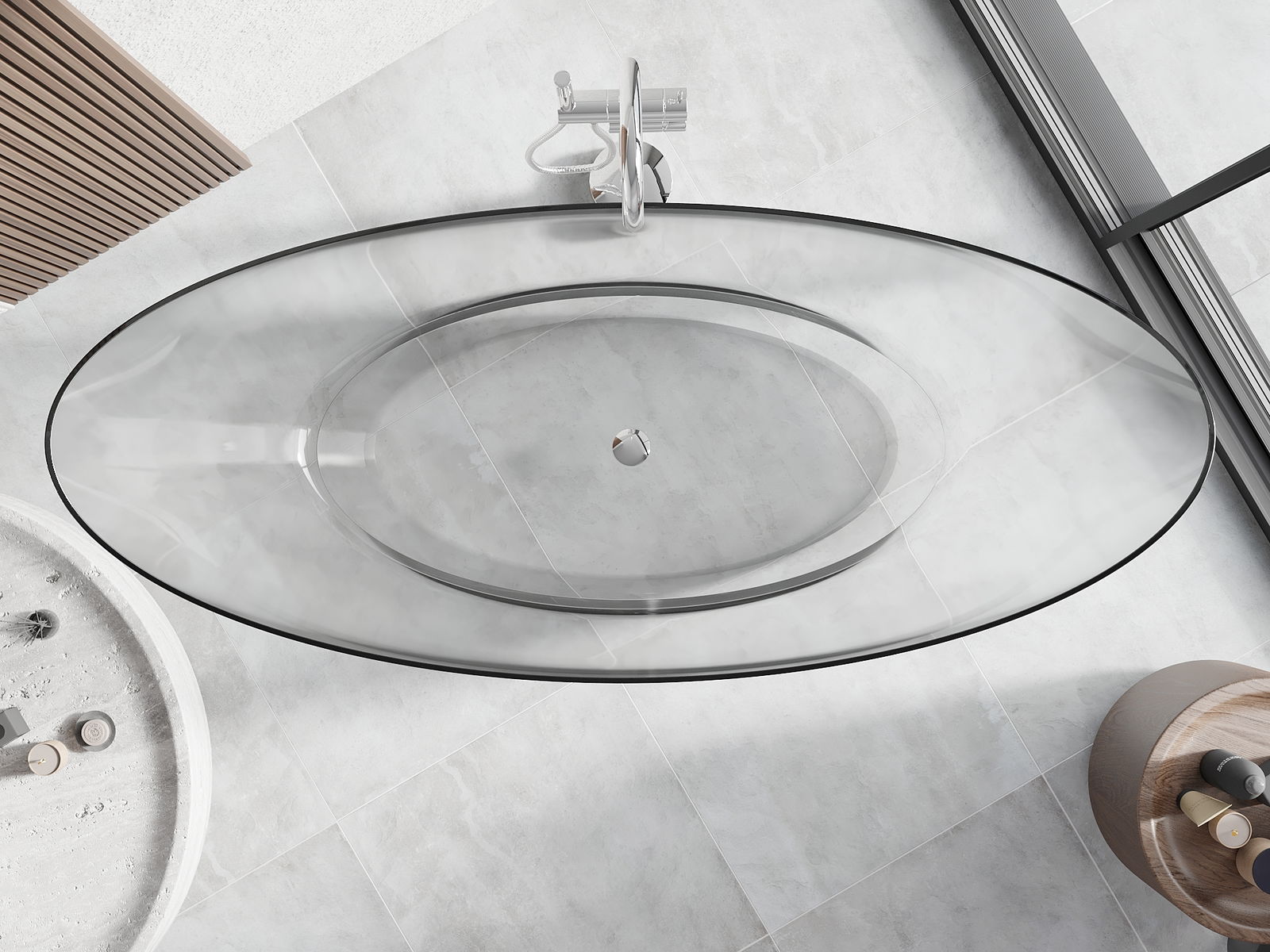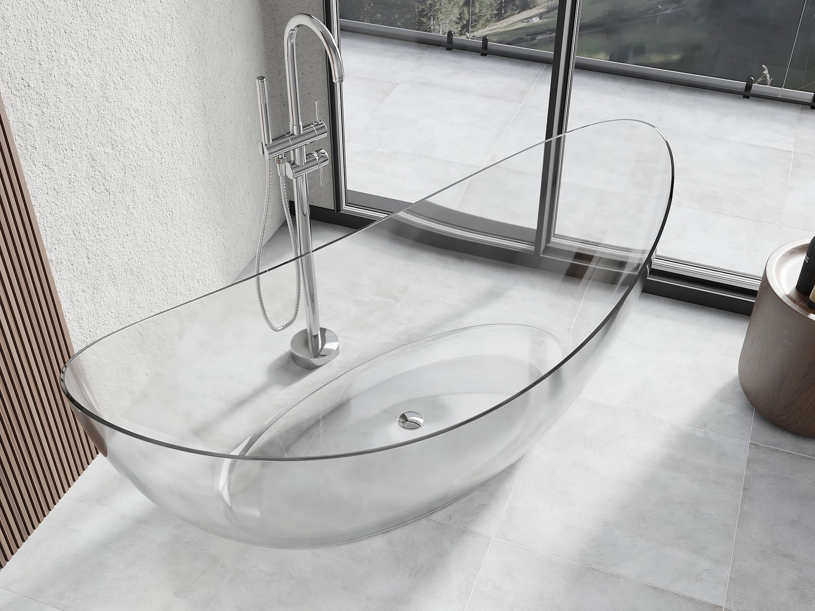 Este un material modern care combină un aspect elegant cu o durabilitate ridicată. Este rezistent la deteriorări mecanice, ușor de curățat și plăcut la atingere. Forma transparentă și marginea subțire a căzii îi conferă lejeritate și un caracter unic, creând un accent spectaculos în amenajarea băii.