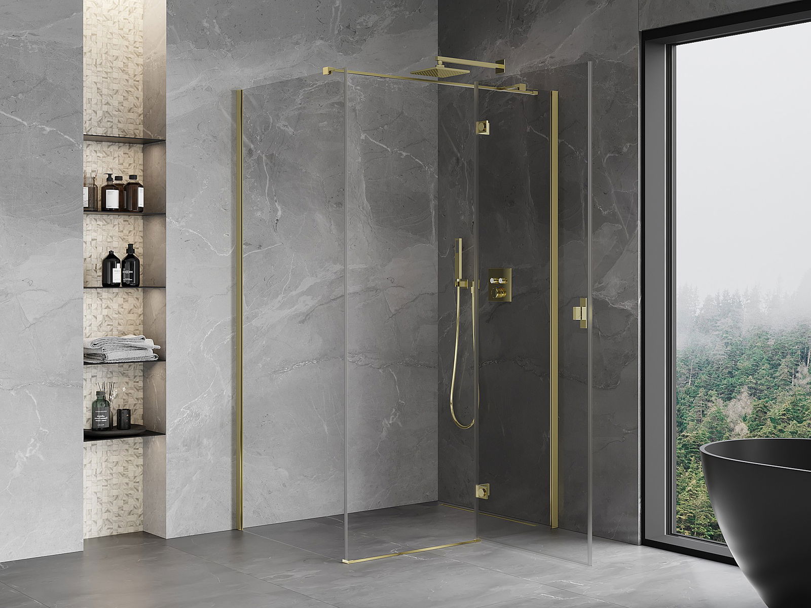 Mânerul practic și confortabil este realizat din metal durabil și rezistent. Forma modernă, combinată cu un finisaj asortat cu culoarea profilelor, conferă un aspect modern și elegant întregului, subliniind estetica fiecărei băi.