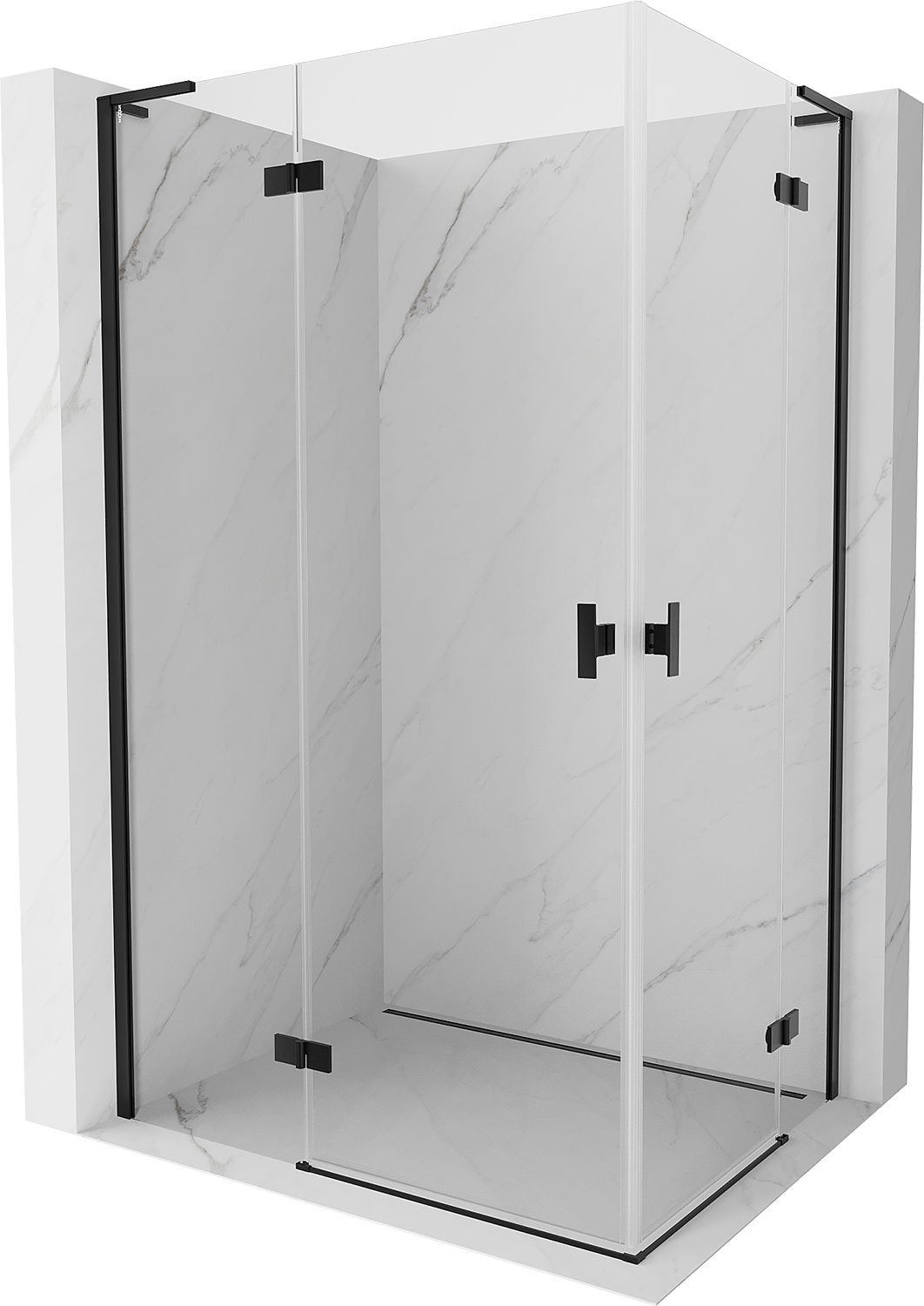 Mexen Mist-H L Duo cabină de duș rabatabilă stânga 85 x 80 cm, transparentă, neagră - 8A5L-085L-080P-70-00