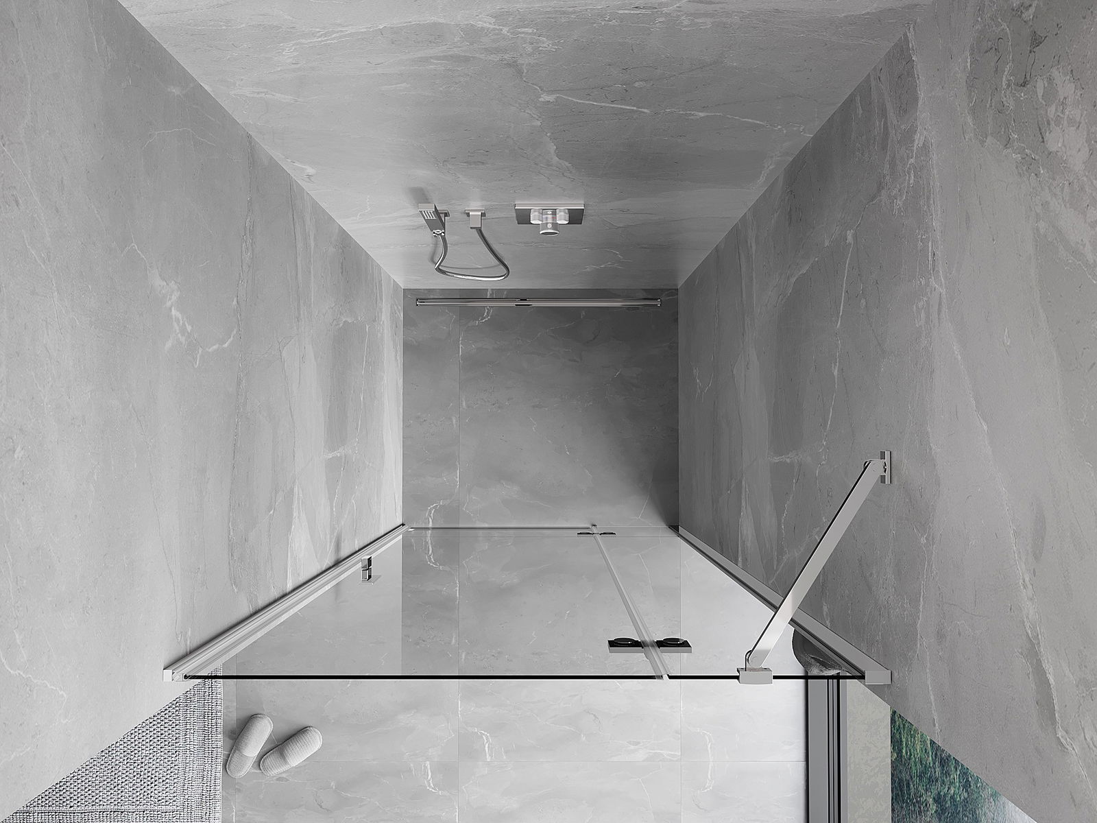 Produsul poate fi montat fie pe cabina de duș, fie direct pe podea, în funcție de nevoi. Metoda de montare universală permite adaptarea produsului la diferite tipuri de băi și configurații de spațiu.