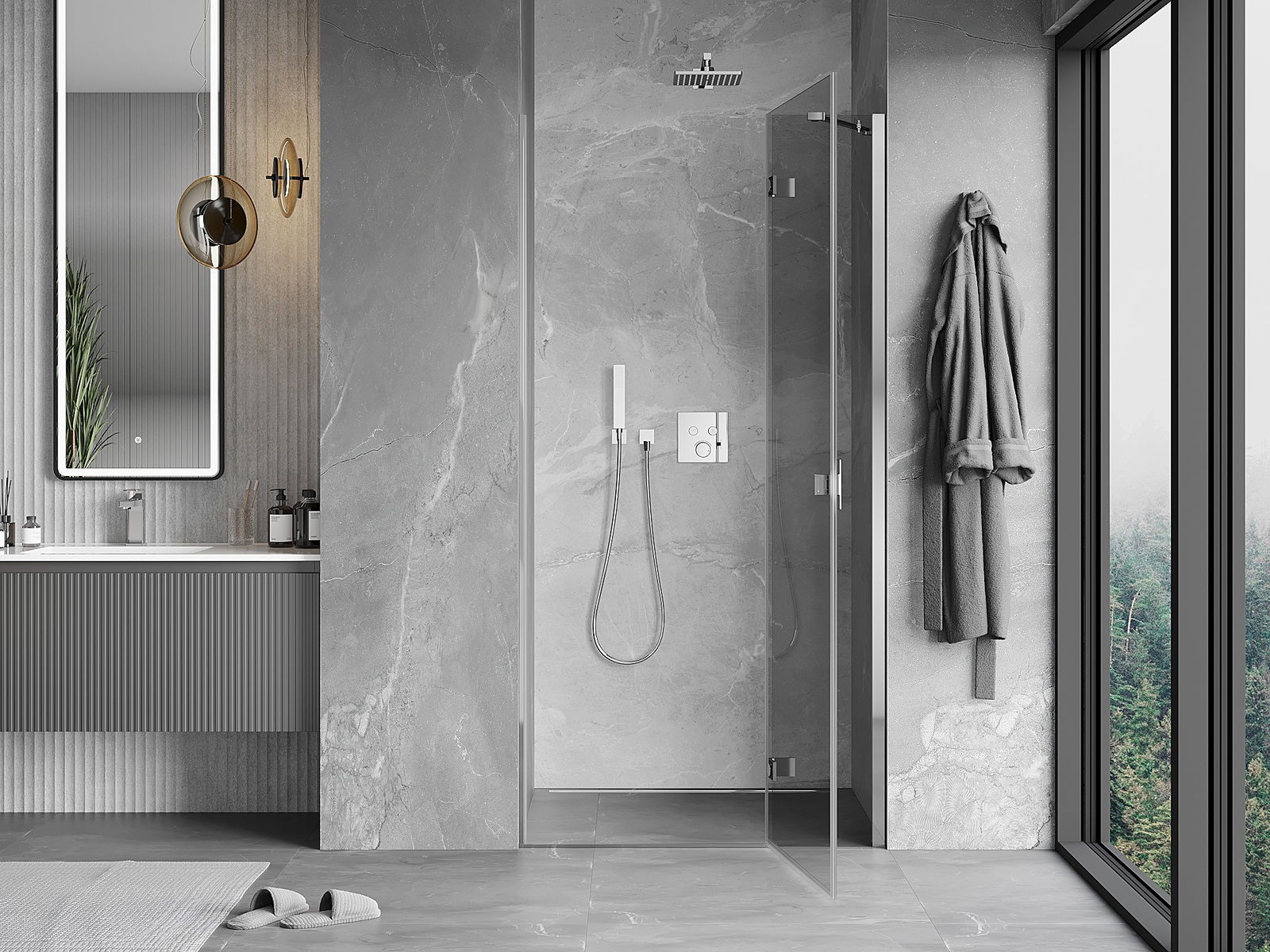 Mânerul practic și confortabil este realizat din metal durabil și rezistent. Forma modernă, combinată cu un finisaj asortat cu culoarea profilelor, conferă un aspect modern și elegant întregului, subliniind estetica fiecărei băi.