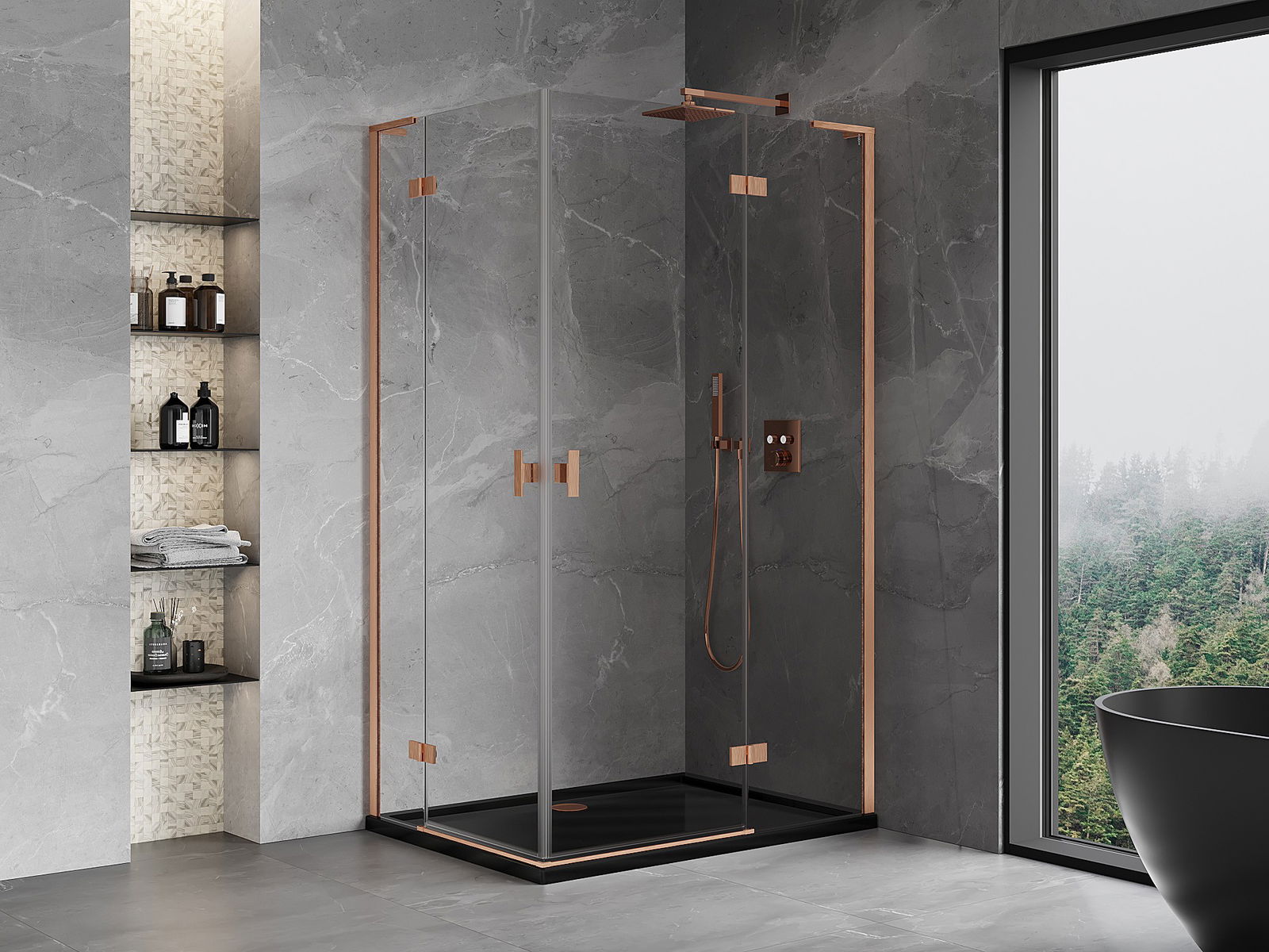 Mexen Mist-H L Duo cabină de duș batantă dreapta 85 x 120 cm, transparent, cupru periat - 8A5L-085L-120P-65-00