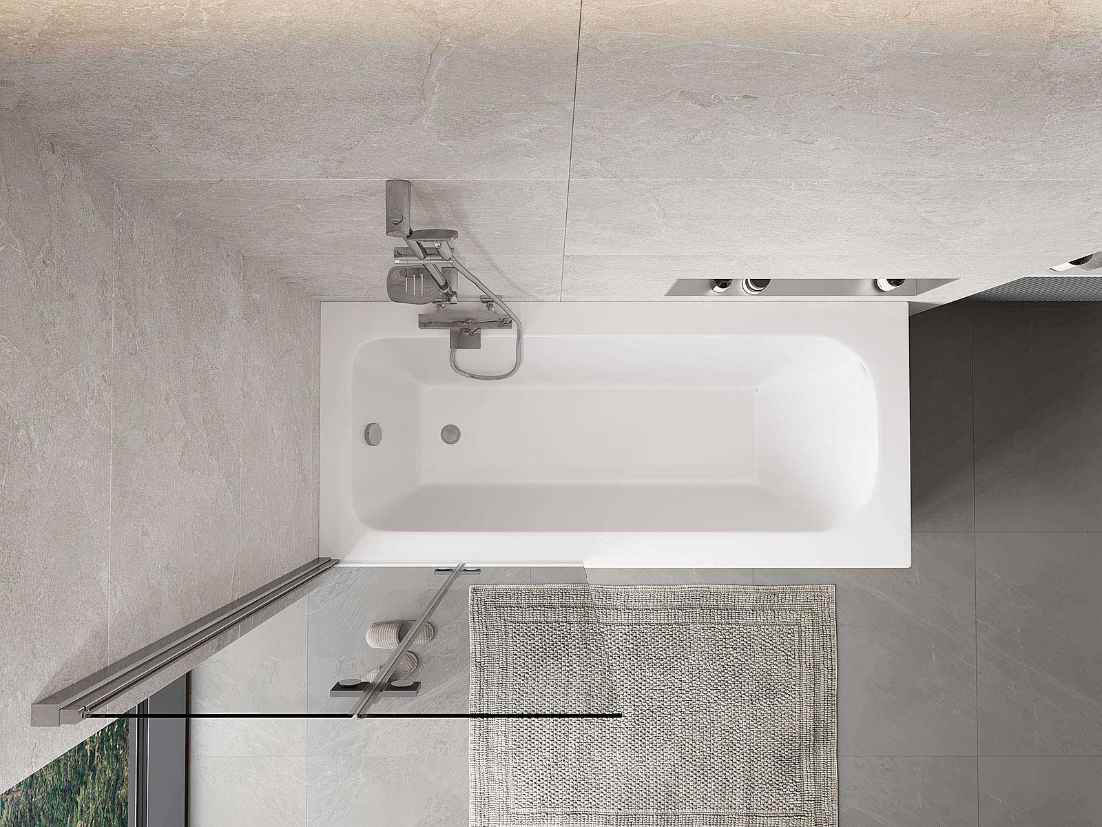 O protecție eficientă împotriva vărsării apei în timpul băii. Paravanul are garnituri care se potrivesc perfect cu suprafața de sticlă și marginea căzii. O soluție funcțională care asigură siguranță și întreținere ușoară a curățeniei.