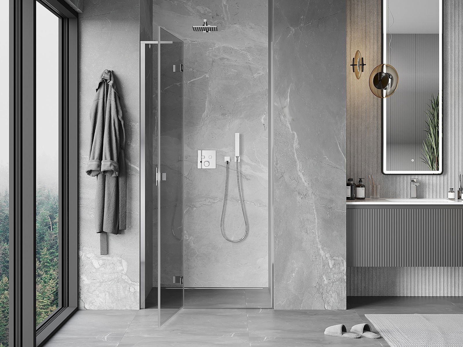 Mânerul practic și confortabil este realizat din metal durabil și rezistent. Forma modernă, combinată cu un finisaj asortat cu culoarea profilelor, conferă un aspect modern și elegant întregului, subliniind estetica fiecărei băi.
